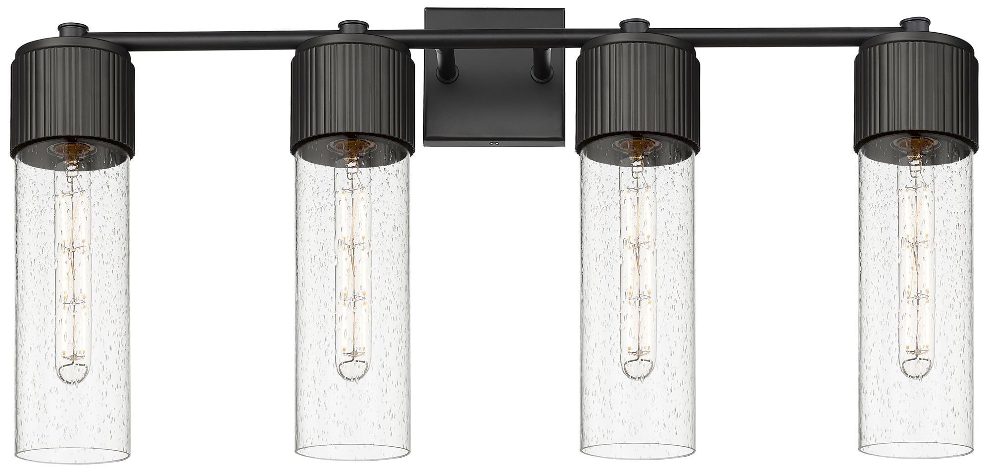 Bolivar 31" Wide 4 Light Matte Black Bath Light With Seedy Glass Shade