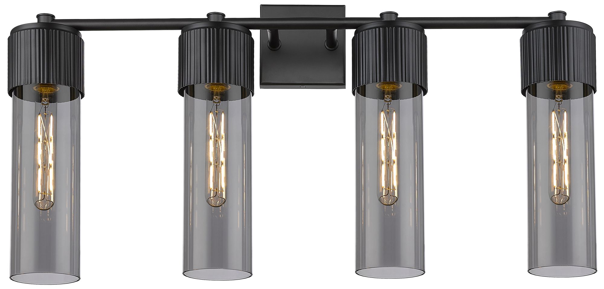 Bolivar 31" Wide 4 Light Matte Black Bath Light With Plated Smoke Shad