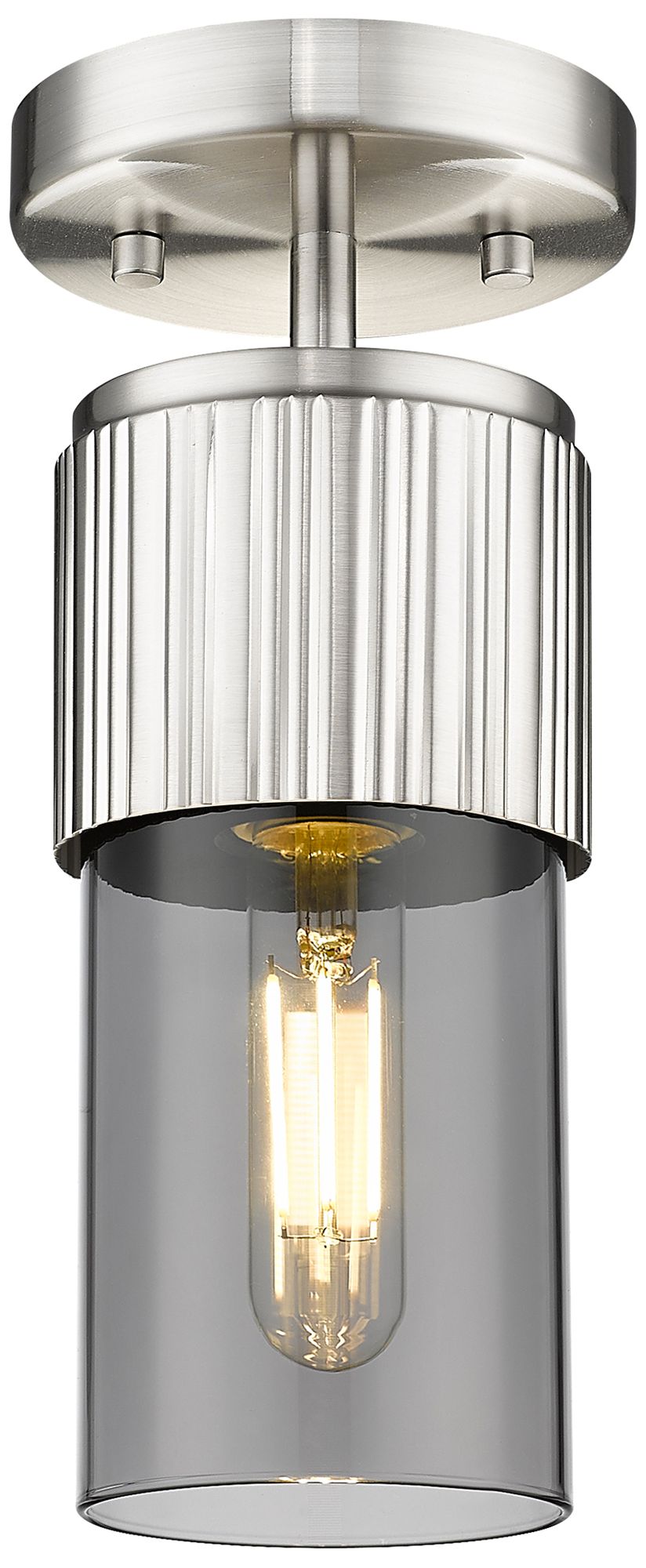 Bolivar 4" Wide Satin Nickel Flush Mount With Plated Smoke Glass Shade
