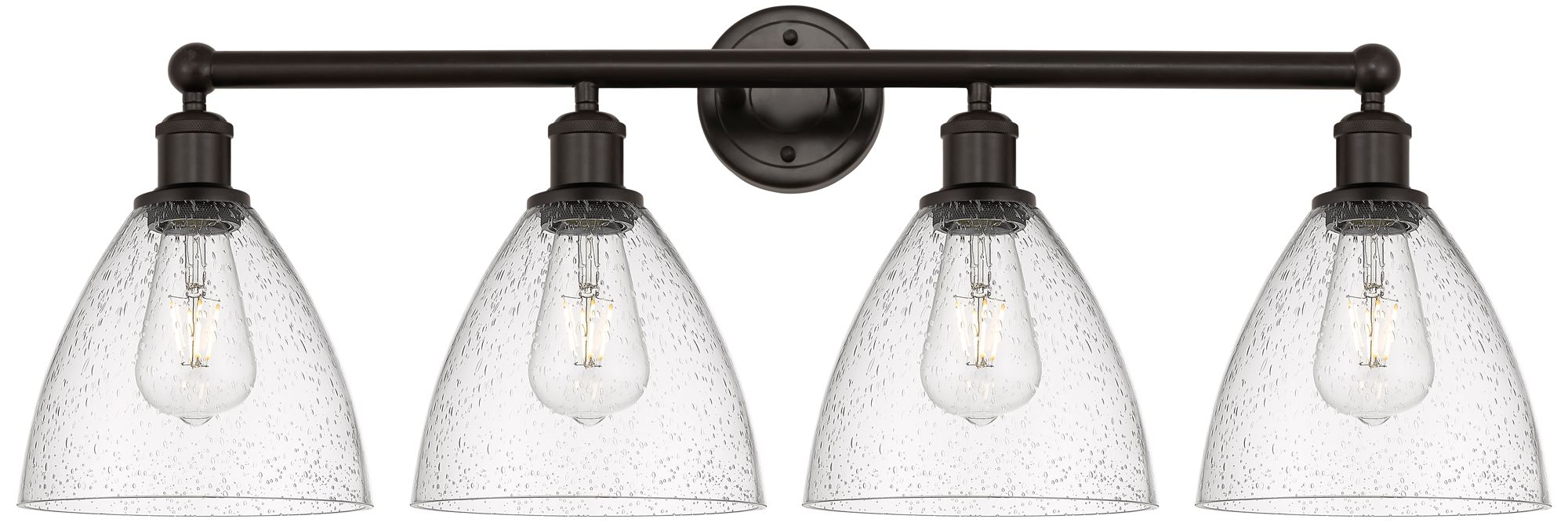 Bristol Glass 35" 4-Light Oil Rubbed Bronze Bath Light w/ Seedy Shade