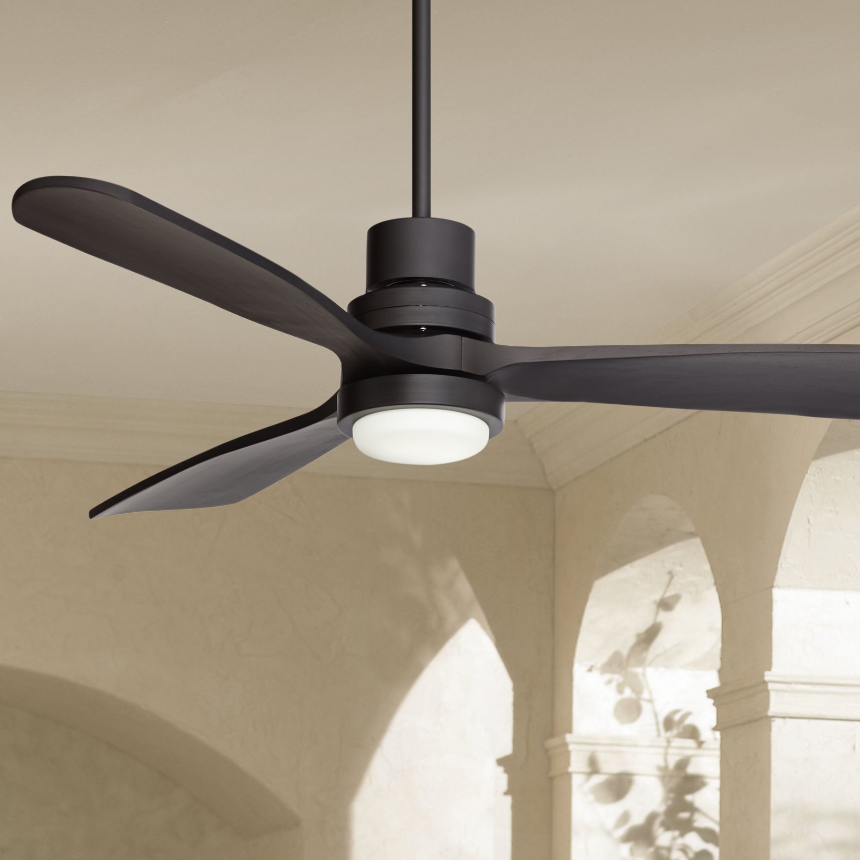 52" Casa Delta-Wing Matte Black Outdoor LED Ceiling Fan with Remote