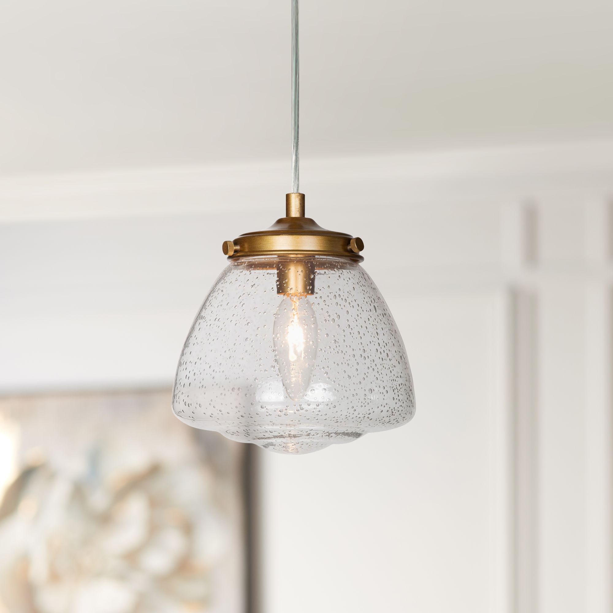 Lavaje 6 1/2"W Gold Iron Seeded Glass Mini Pendant Light