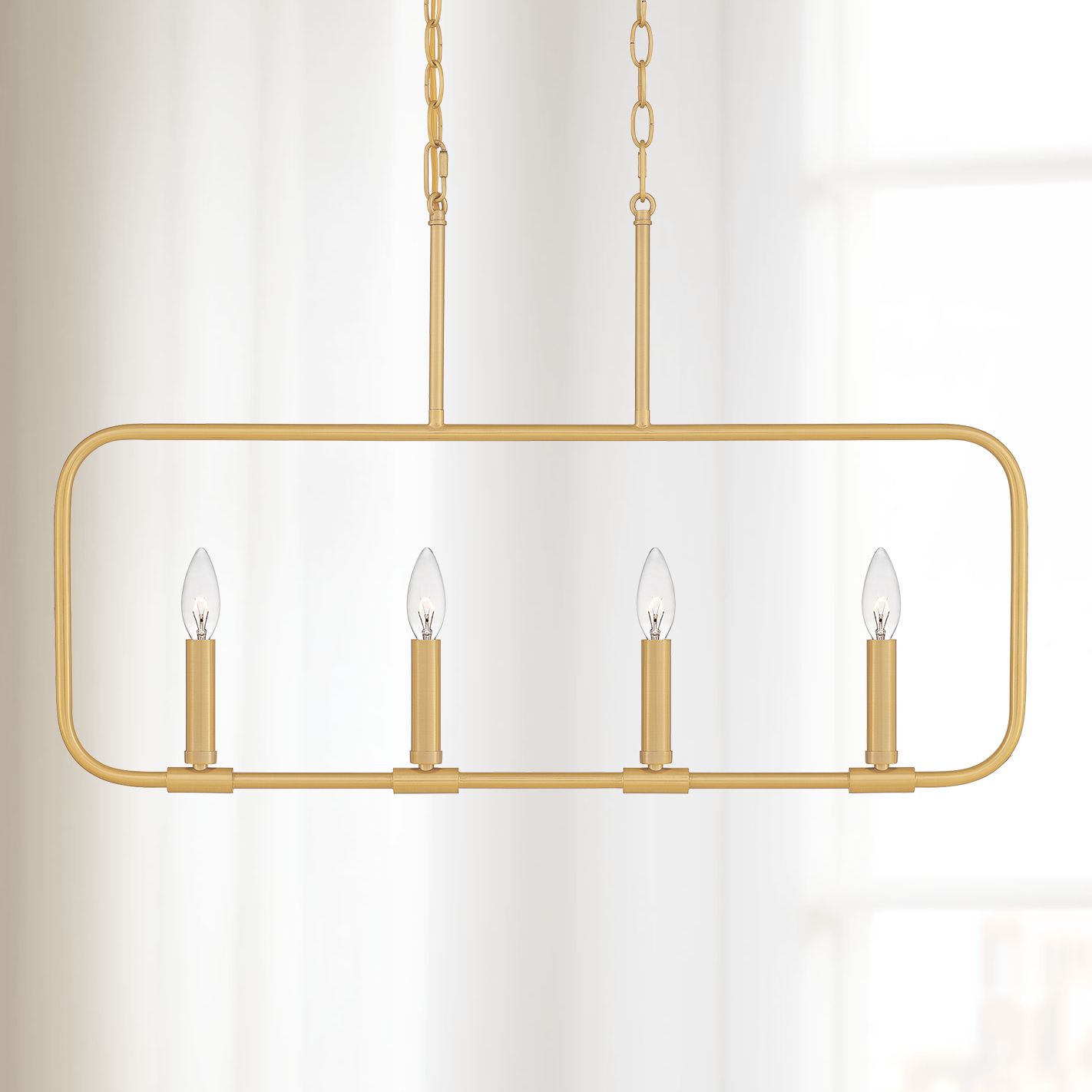 Quoizel Abner 32" Wide Aged Brass 4-Light Linear Chandelier