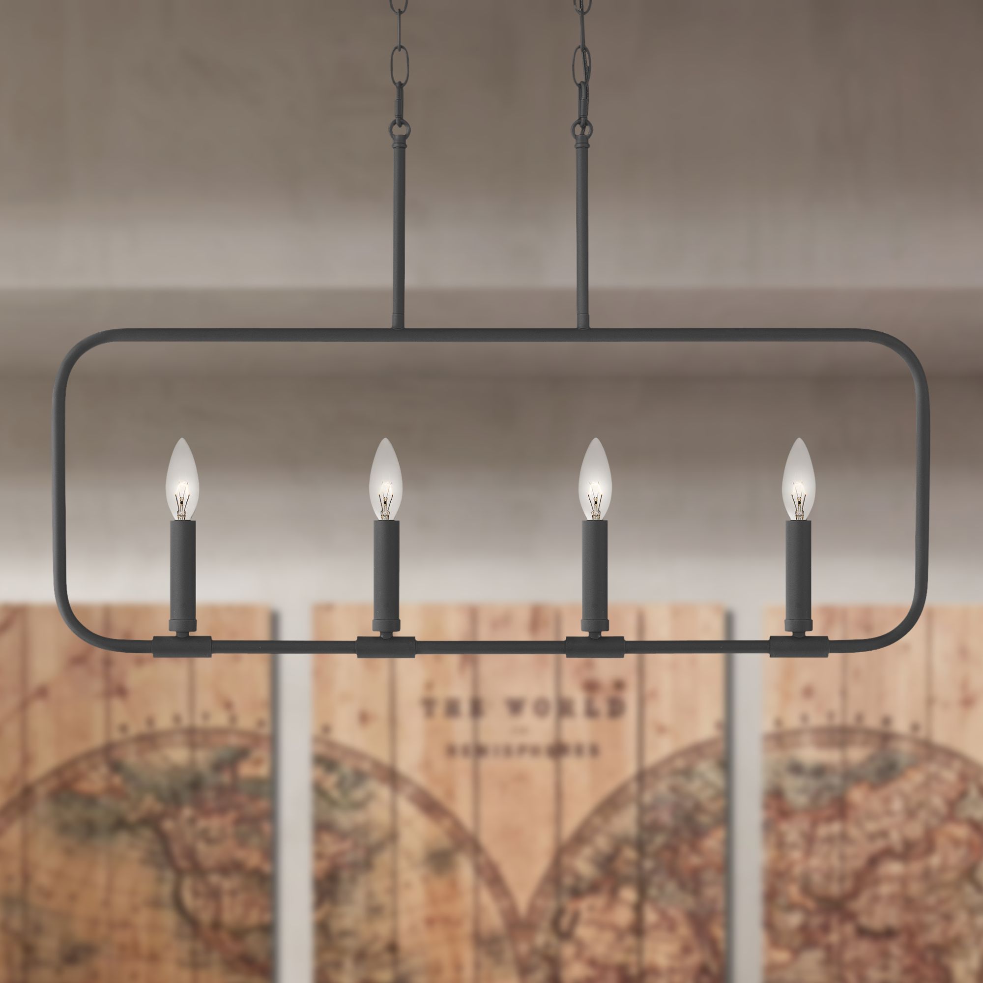 Quoizel Abner 32" Wide Matte Black 4-Light Linear Chandelier