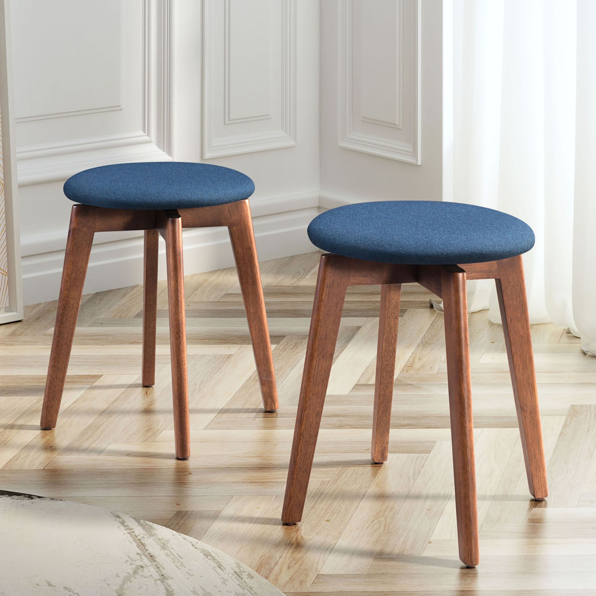 Billy 19 1/4" Blue Fabric and Walnut Accent Stools Set of 2