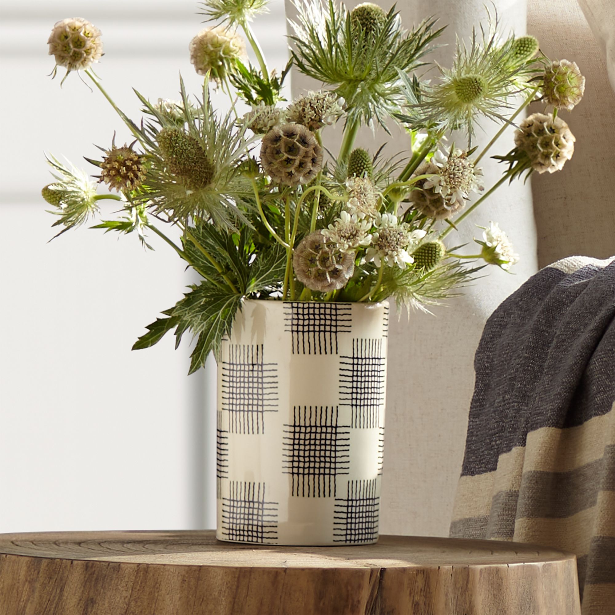 Cross Hatch Black w/ White 7 3/4"H Porcelain Decorative Vase