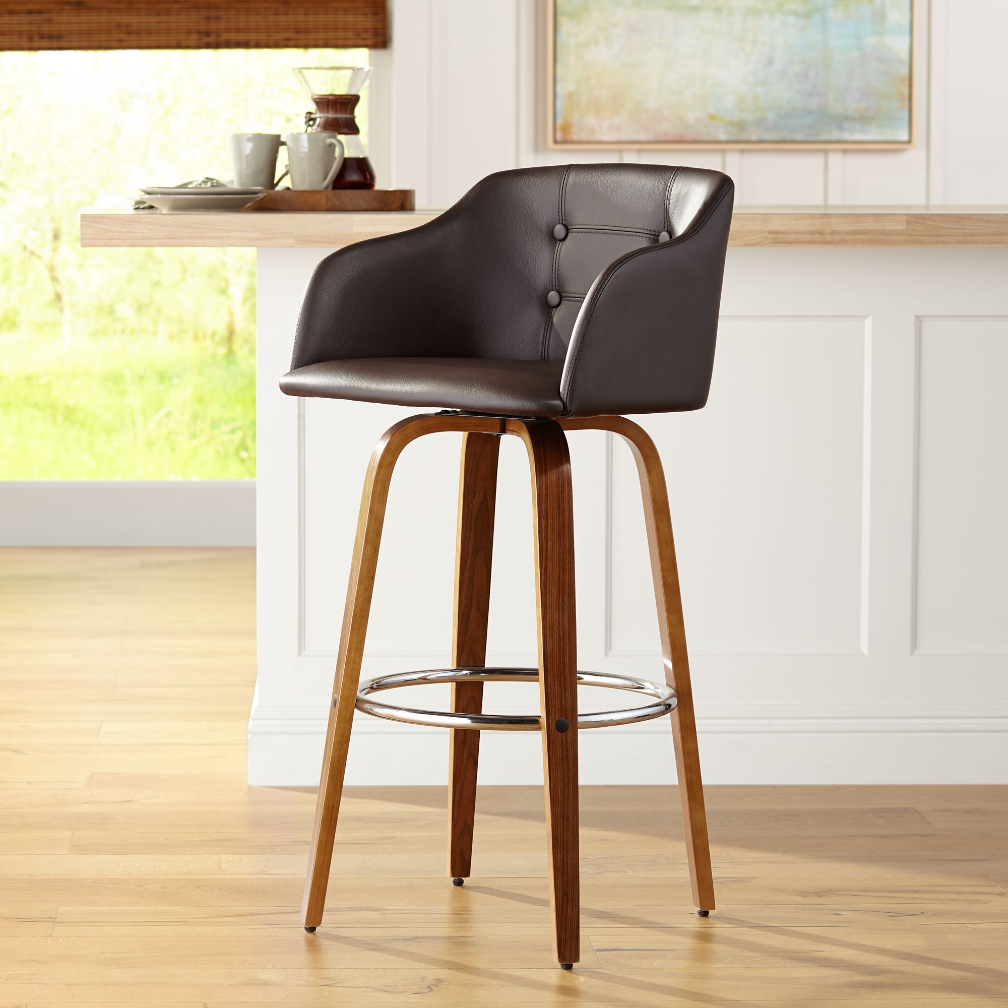 Bruno 29 1/2" Chocolate Faux Leather Swivel Barstool