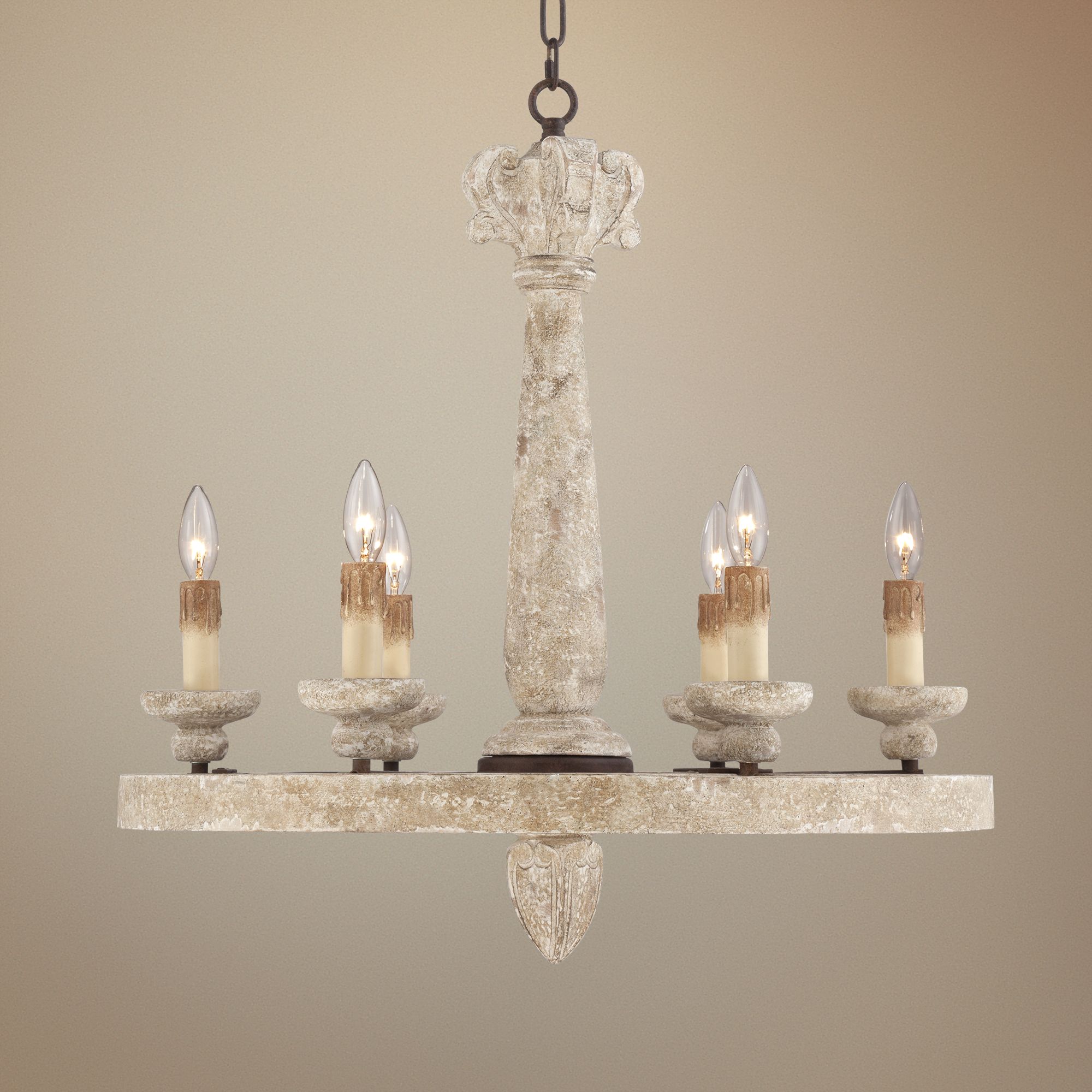 Gyra 26" Wide Antique Scratched White 6-Light Chandelier