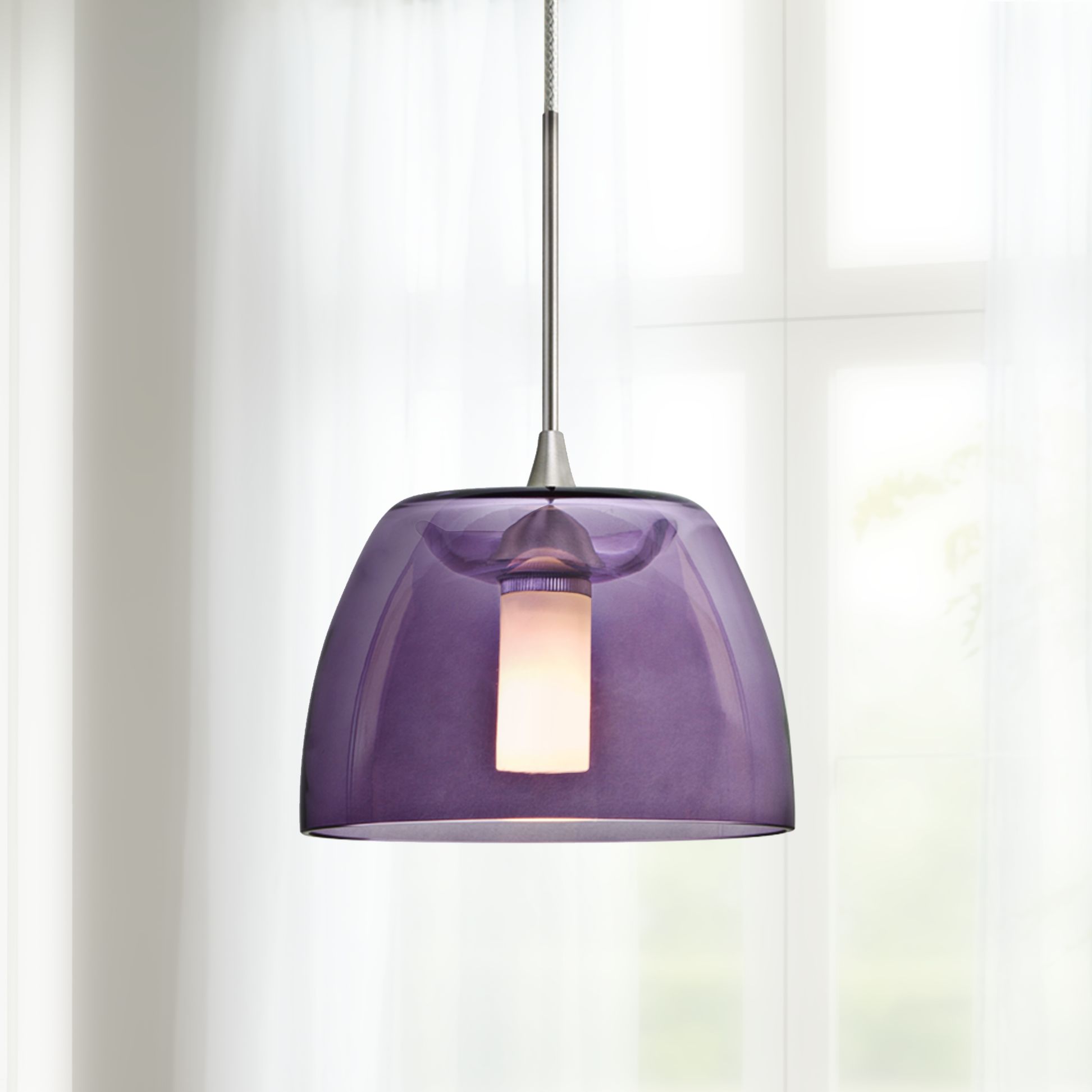 Spur 5 1/2"W Satin Nickel Purple Glass LED Mini Pendant