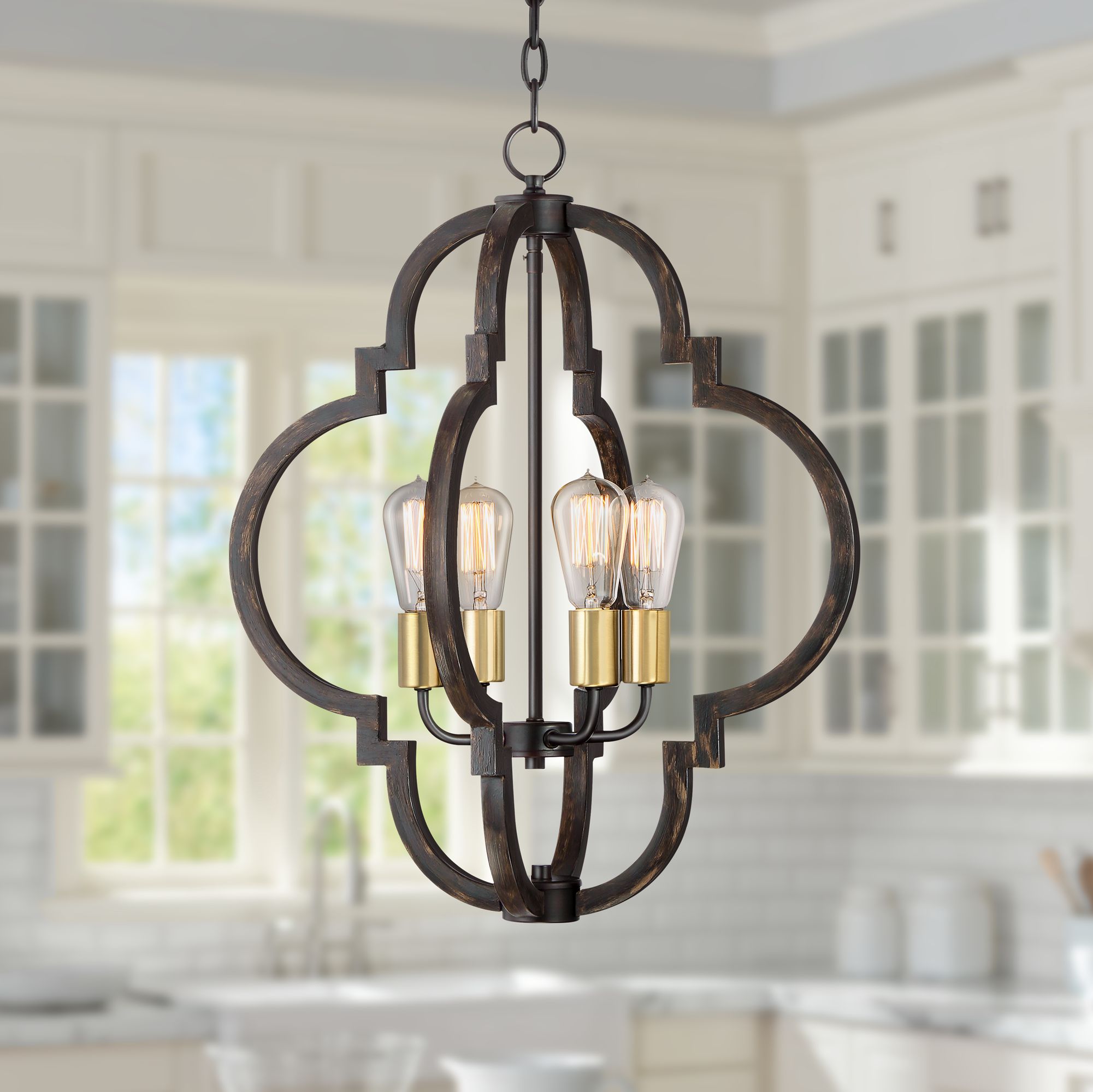 Possini Euro Ayoura 20" Wide Wood Grain 4-Light LED Pendant Chandelier