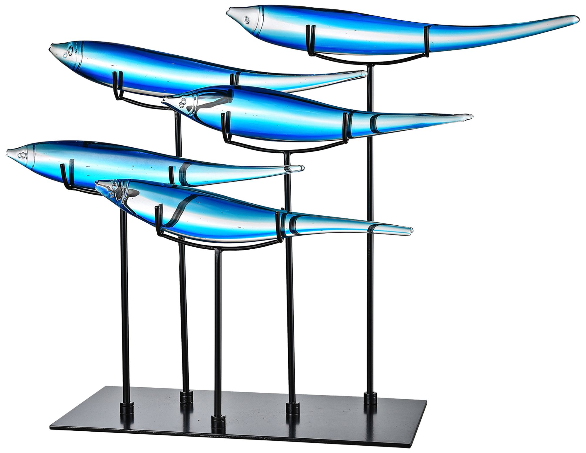Dale Tiffany Five Blue Fish 18" High Art Glass Statue