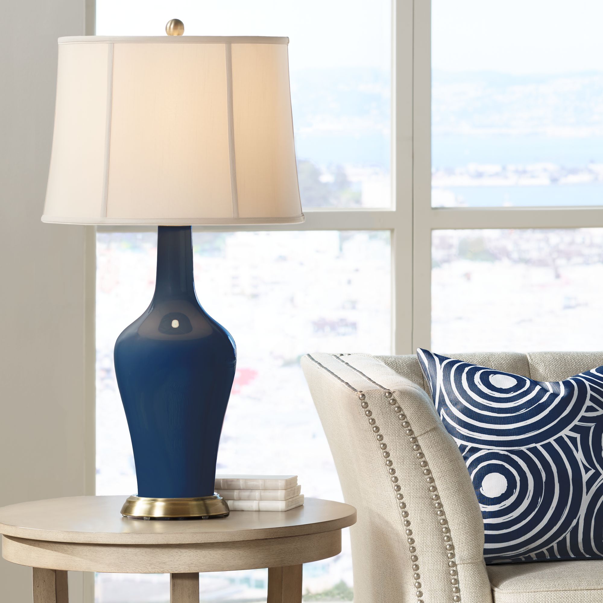 Color Plus Anya 32 1/4" Glass Naval Blue Table Lamp