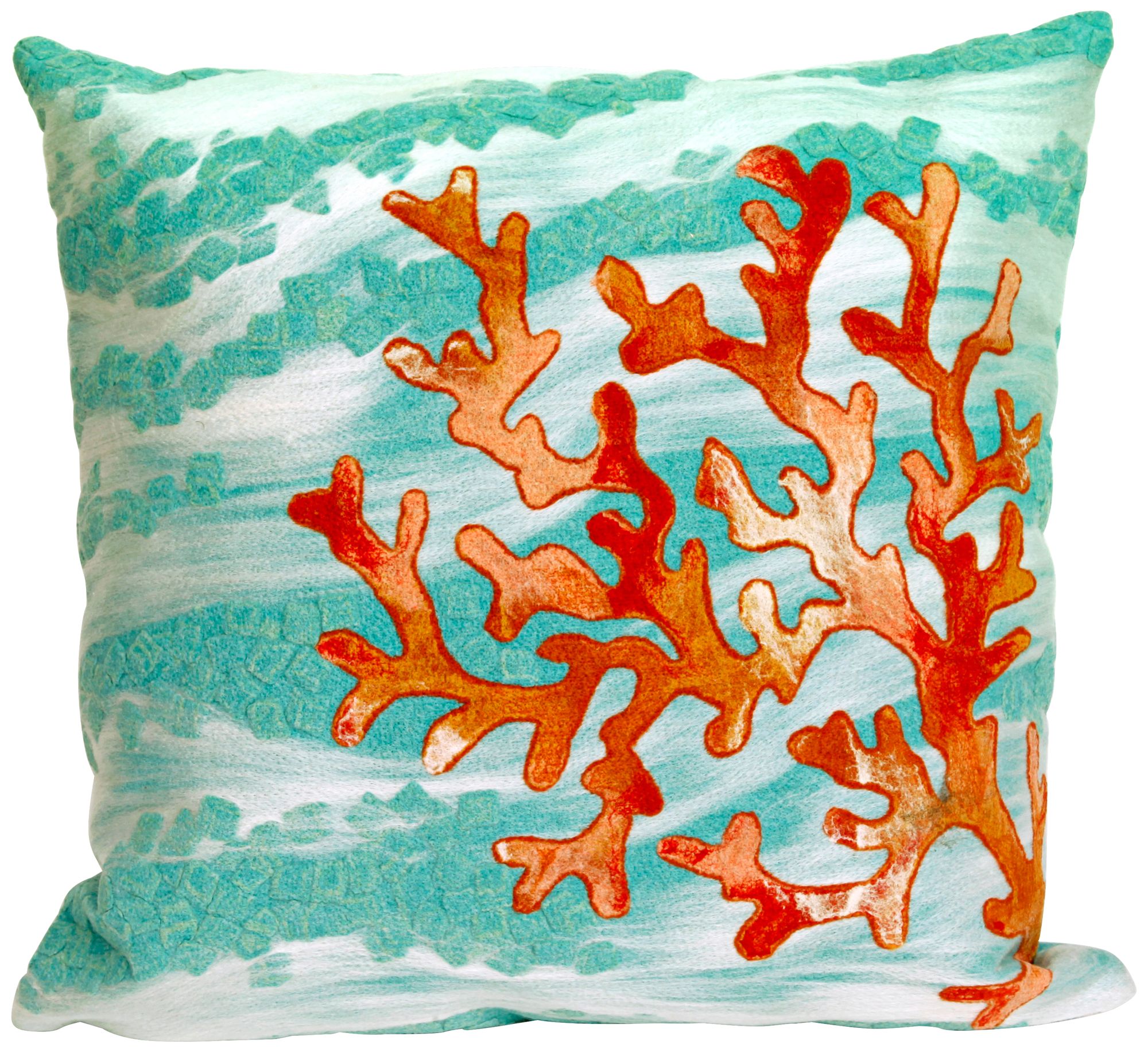 Visions III Coral Wave Aqua 20" Square Indoor-Outdoor Pillow