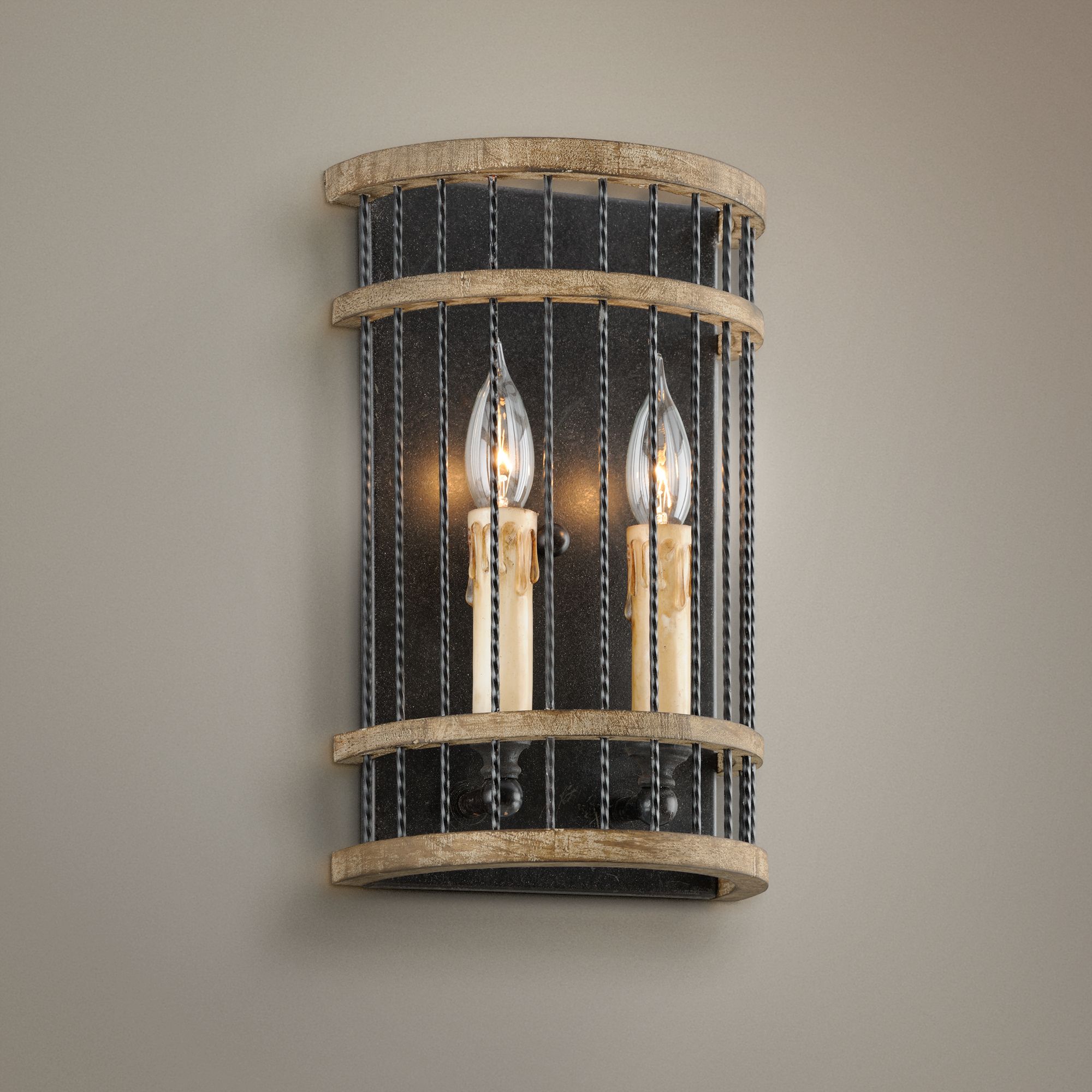 Vineyard 13" High Rusty Iron with Salvaged Wood Wall Sconce