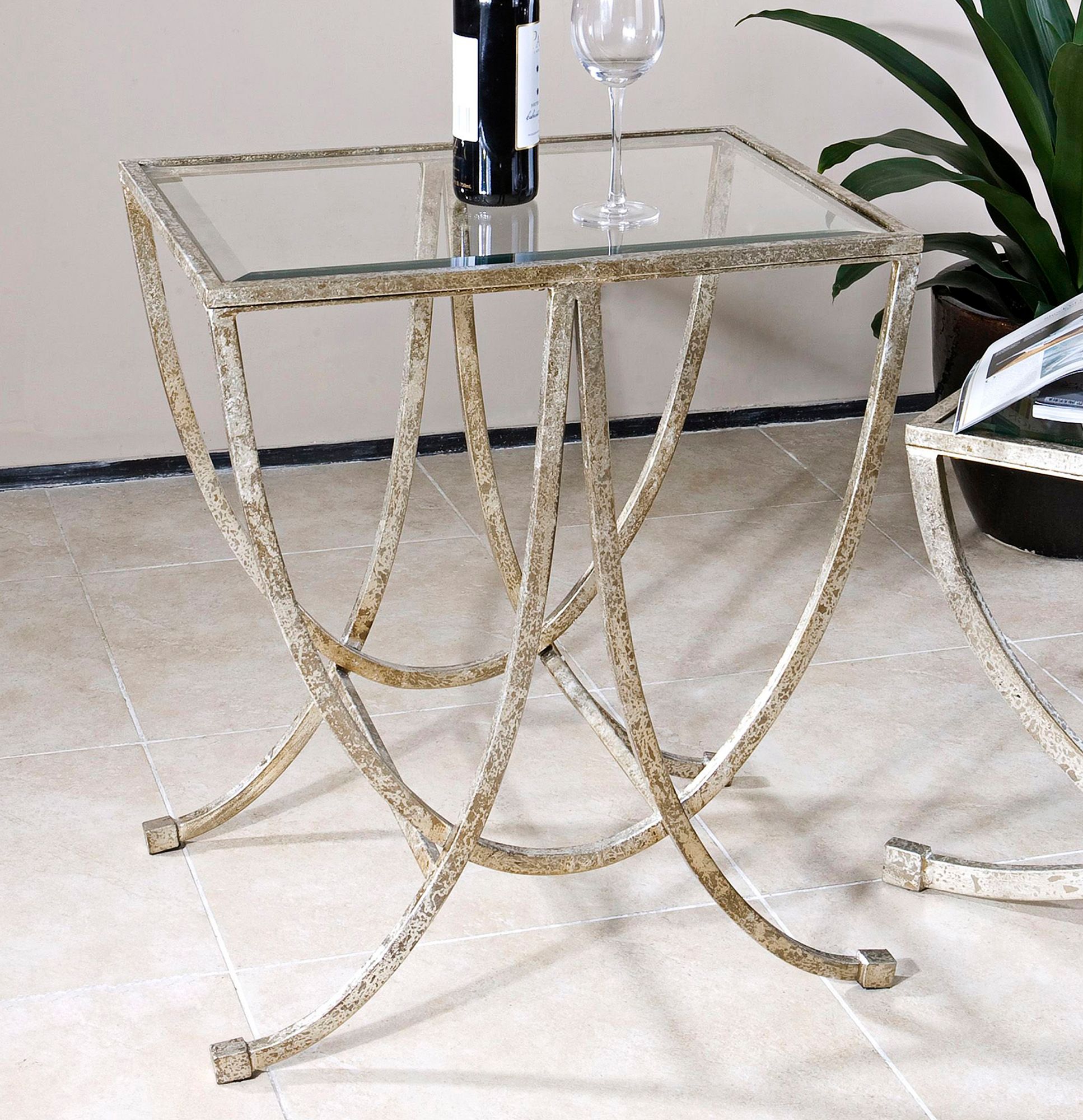 Marta 24" Wide Antiqued Silver Leaf Iron Side Table