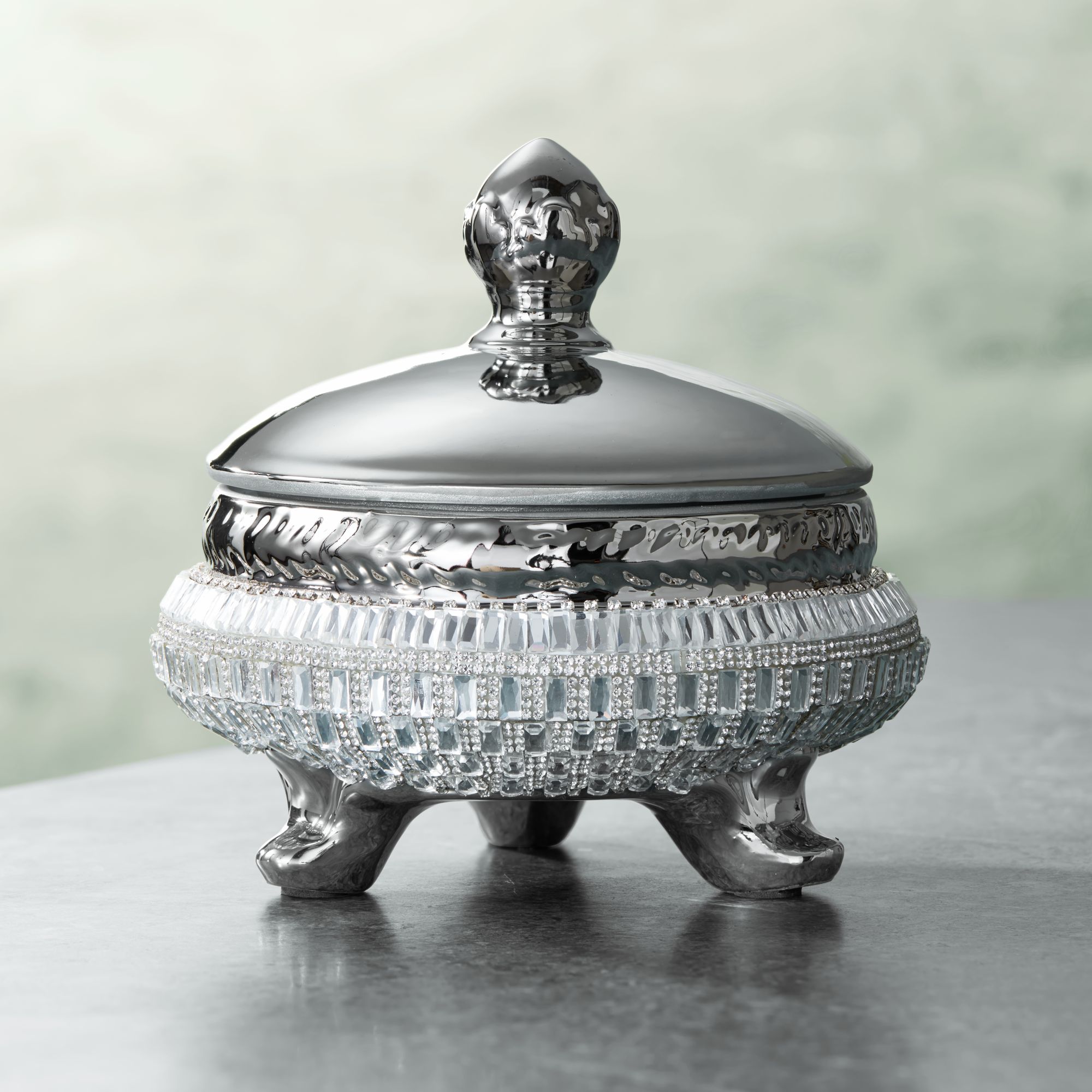 Canicatti 7 1/2" High Silver and Crystal Jar with Lid