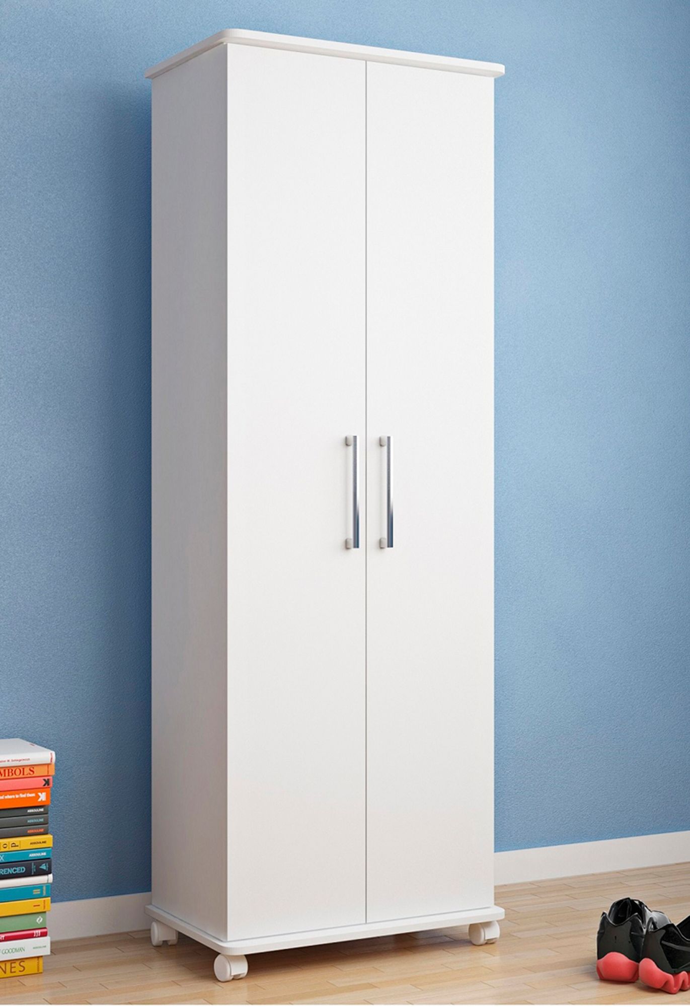 Catalonia 68" High White 2-Door Rolling Shoe Closet