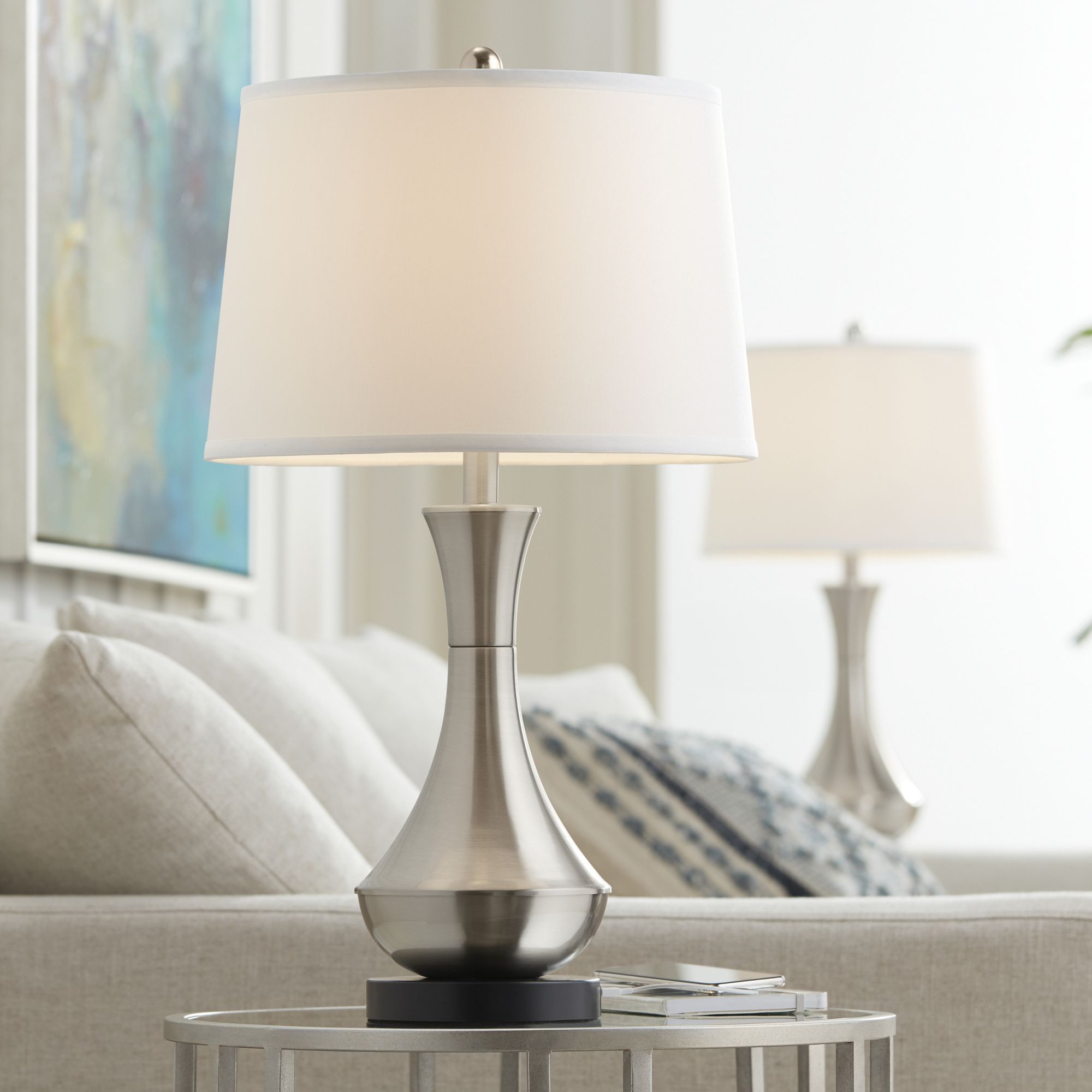 360 Lighting Simon 25 1/2" Brushed Nickel USB Table Lamps Set of 2