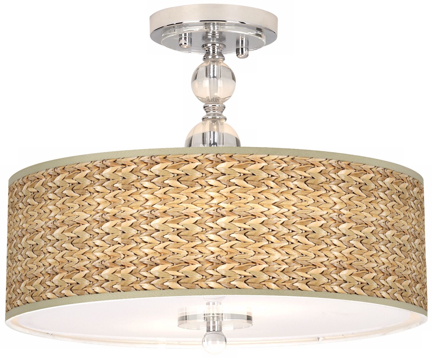 Seagrass Print Pattern 16" Wide Semi-Flush Ceiling Light