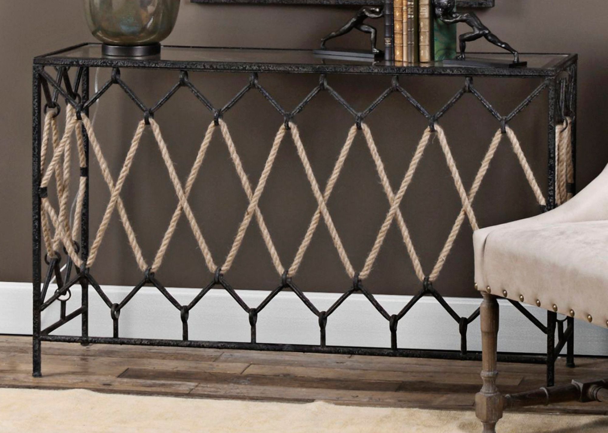 Darya 52" Wide Black Iron Coastal Nautical Console Table