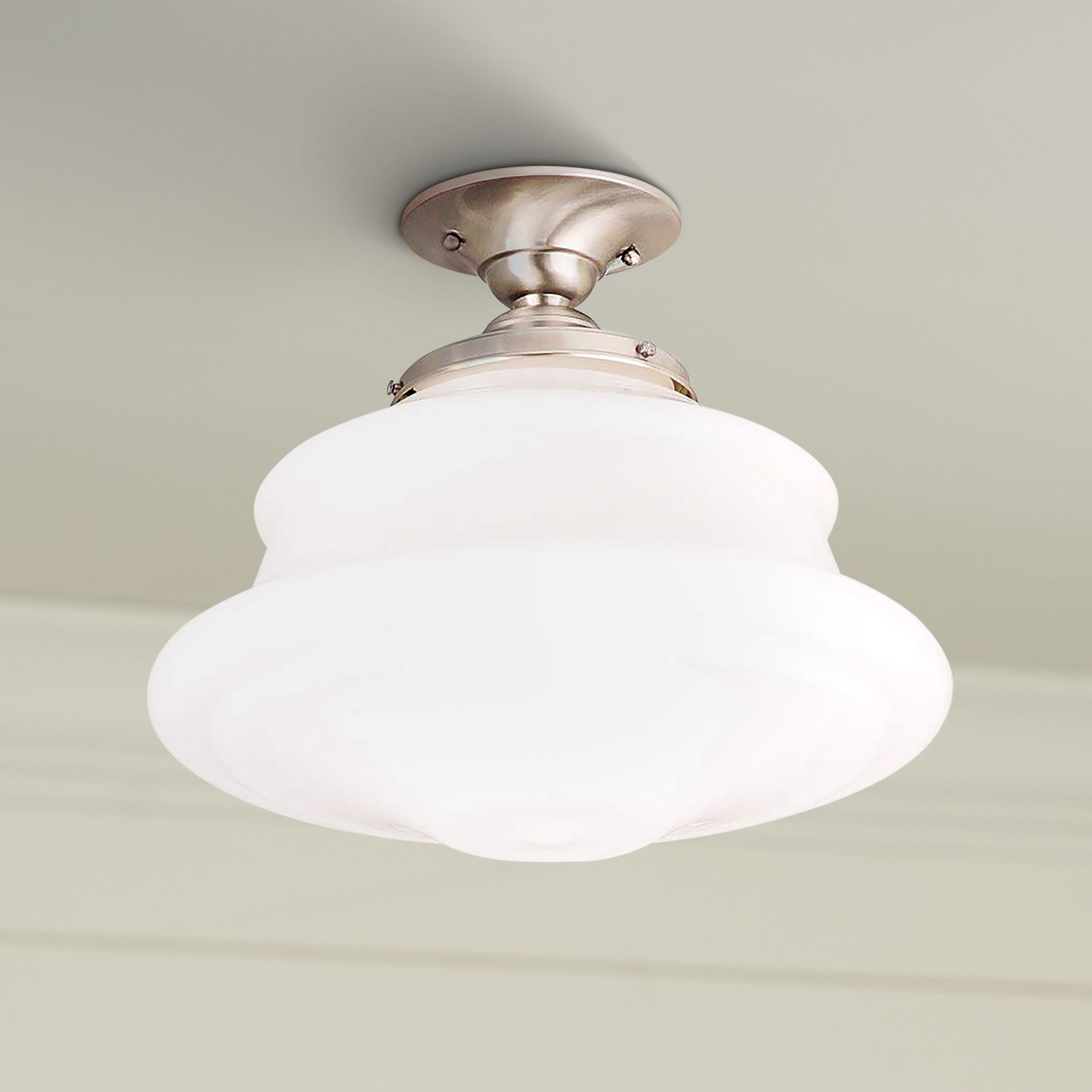 Schoolhouse Button 16” Wide Satin Nickel Ceiling Light