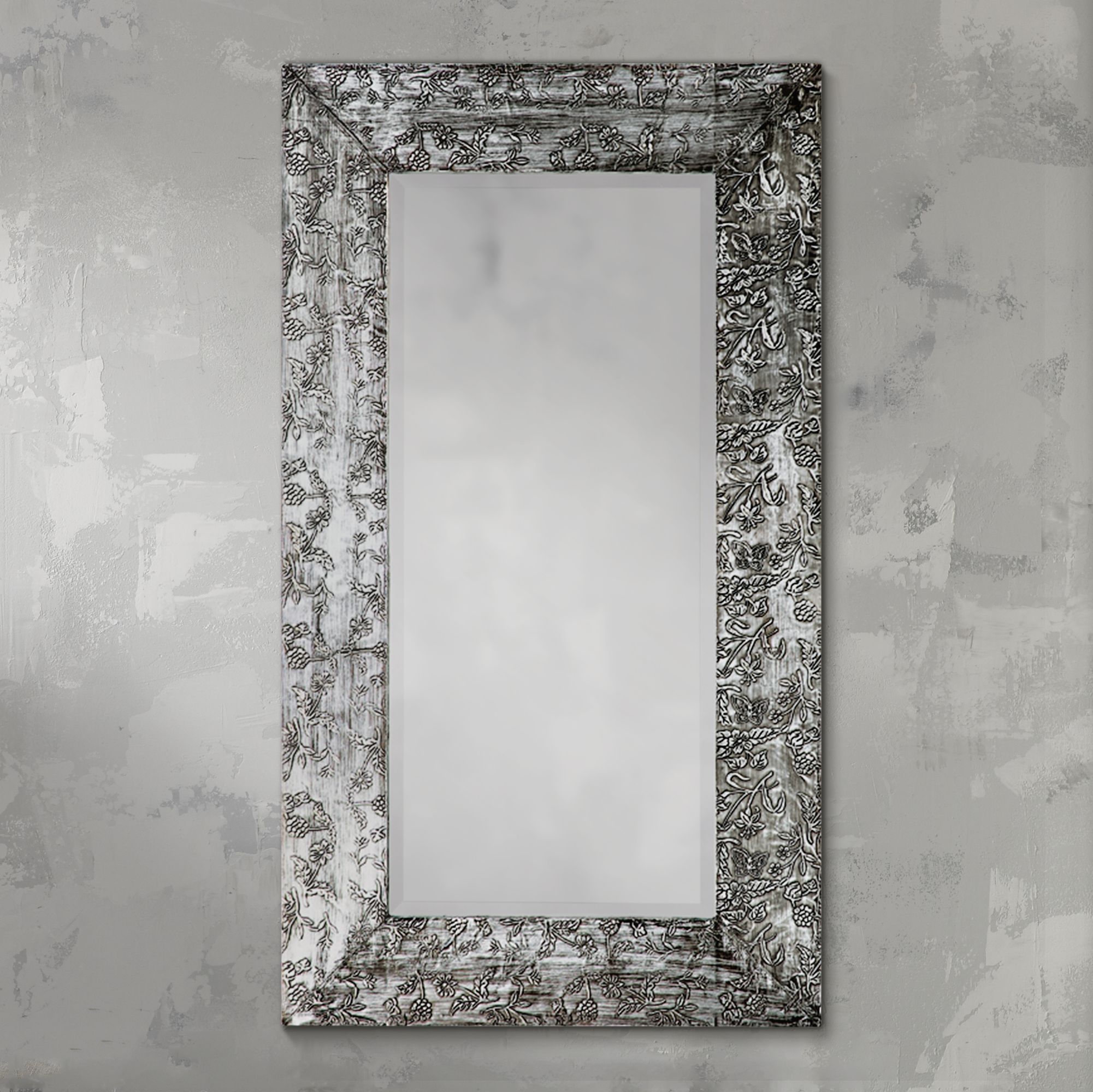 Brushed Silver Embossed Filigree 26" x 46" Wall Mirror