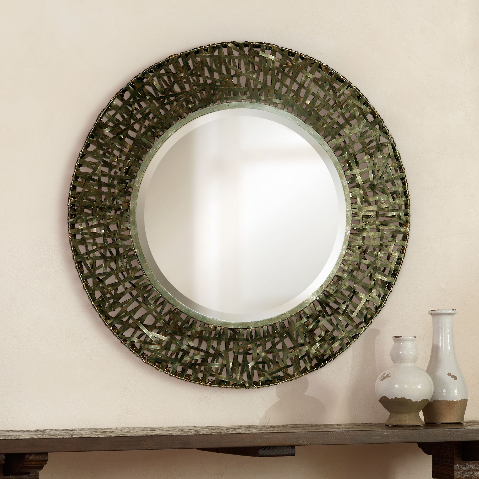 Uttermost Woven Black 37" Round Metal Wall Mirror