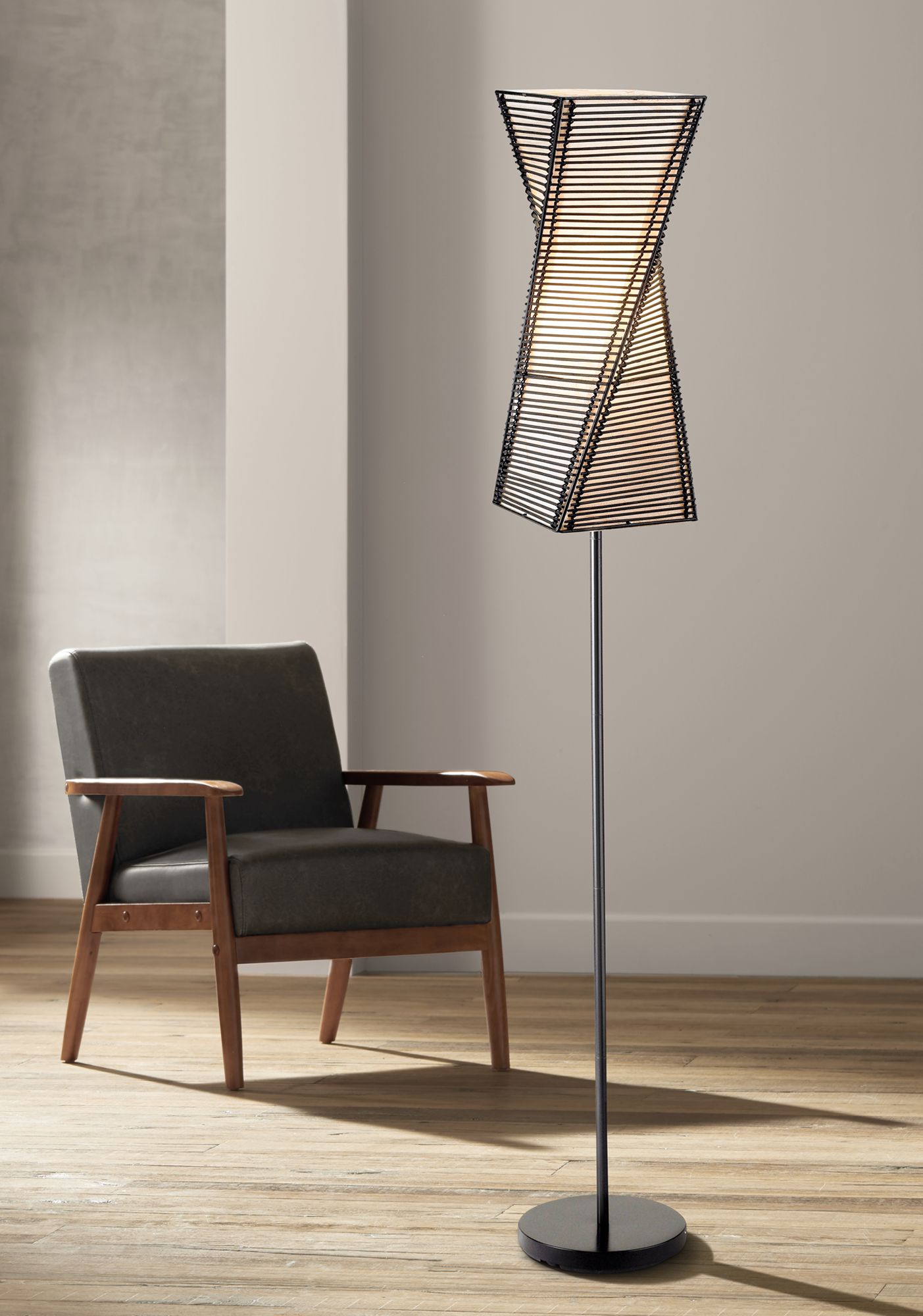 Stix 68" Black Twisted Metal Modern Floor Lamp