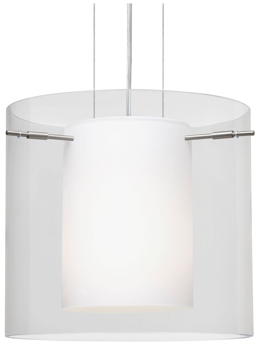 Besa Pahu 12" Wide Clear/Opal/Satin Nickel 1-Light Pendant