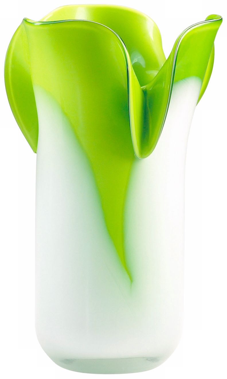 Andre Small Hot Green and Icy White 8 3/4" High Glass Vase