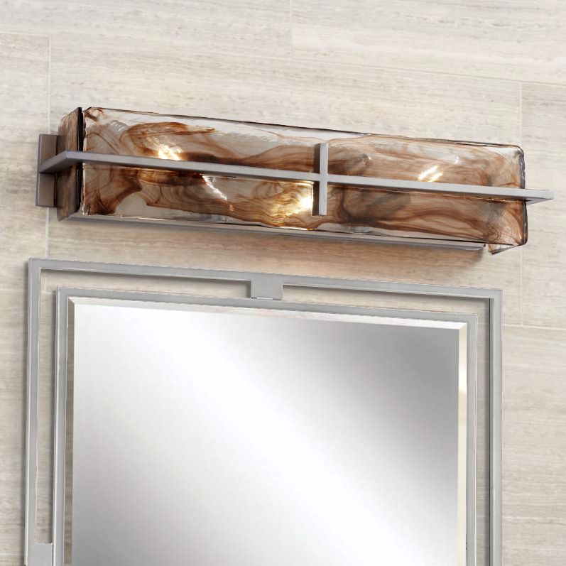 Franklin Iron Works 23 3/4" Bronze-Gold Art Glass Vanity Bath Light