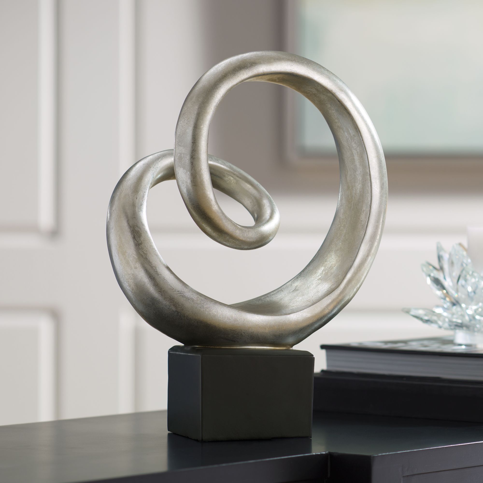 Slanted Spiral 16" High Silver Finish Modern Sculpture