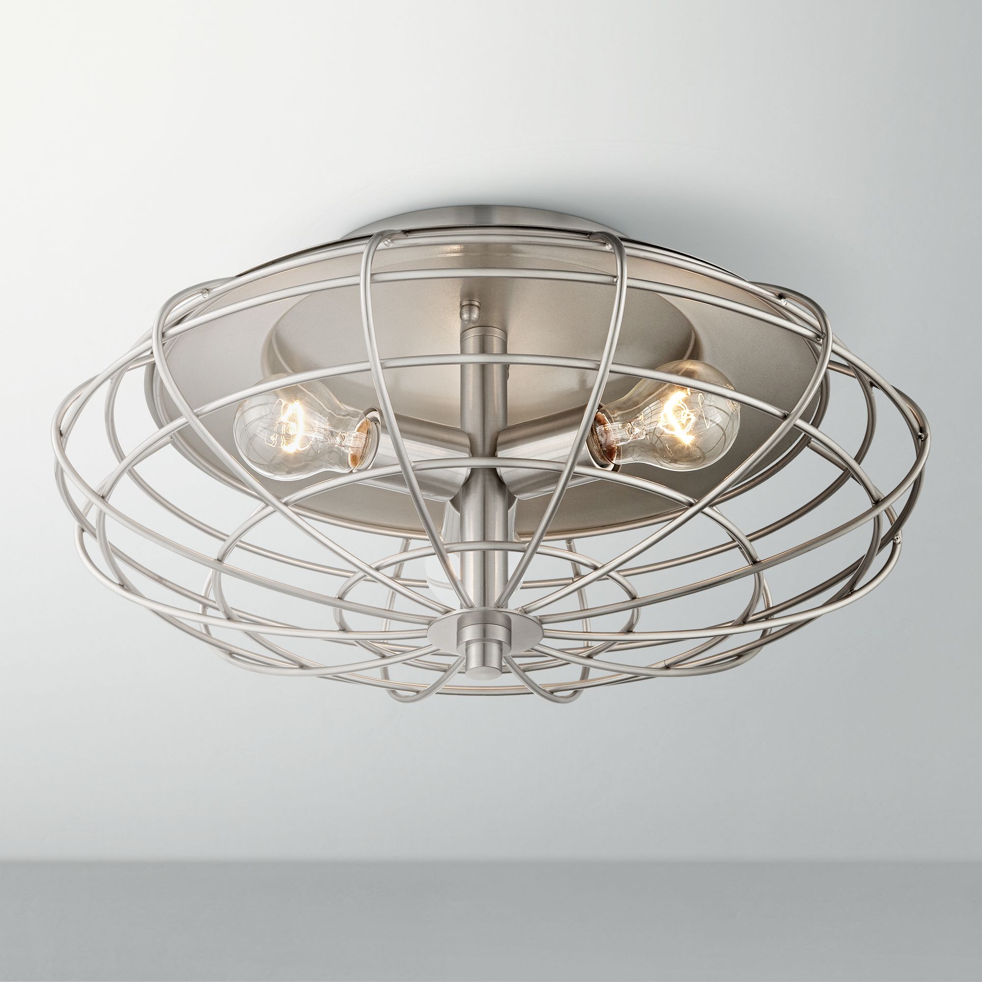 Industrial Cage Nickel 8 1/2" High Ceiling Light Fixture