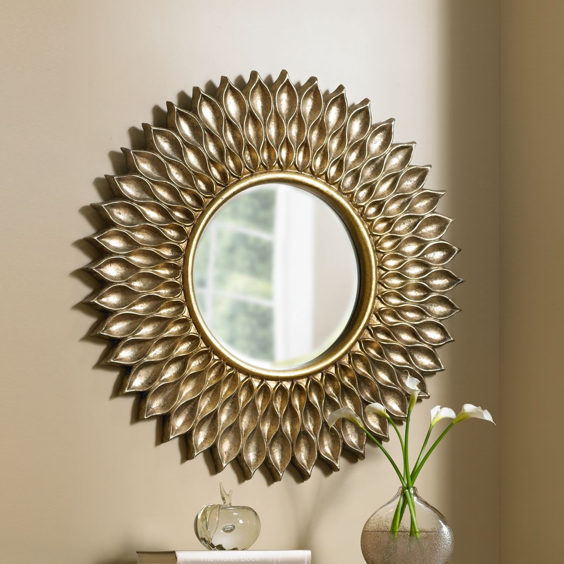 Sunflower 36" Wide Antique Gold Wall Mirror