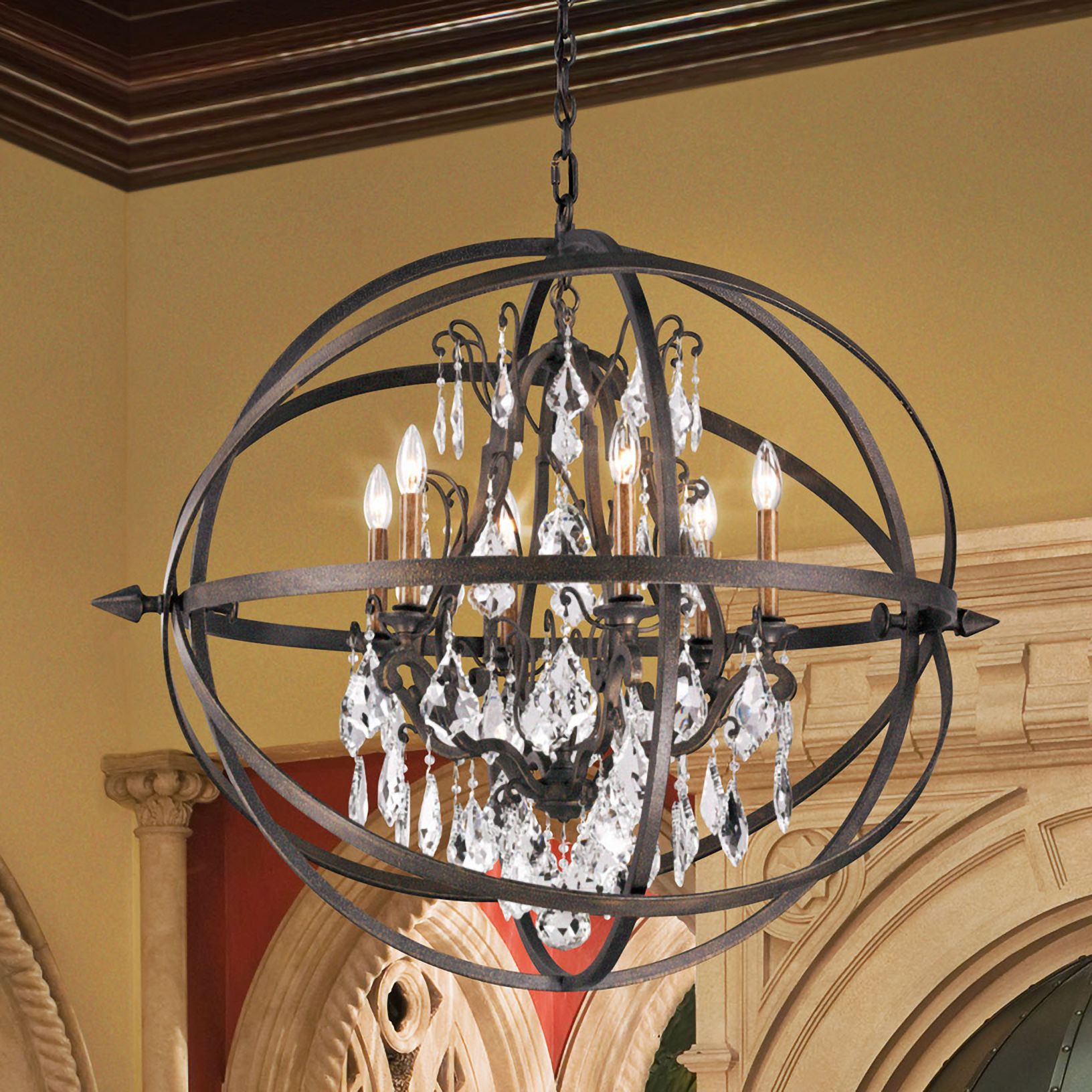 Troy Lighting Byron 33 1/2" Bronze Open Globe and Crystal Chandelier