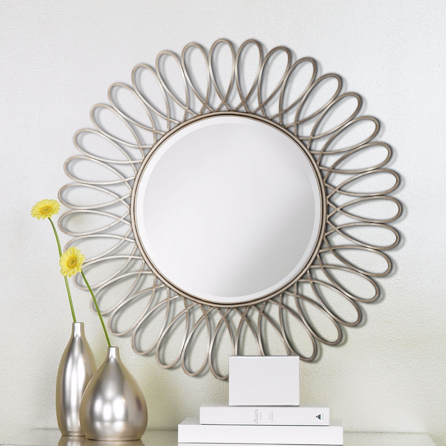 Metal Silver Petal 37 1/2” Round Wall Mirror