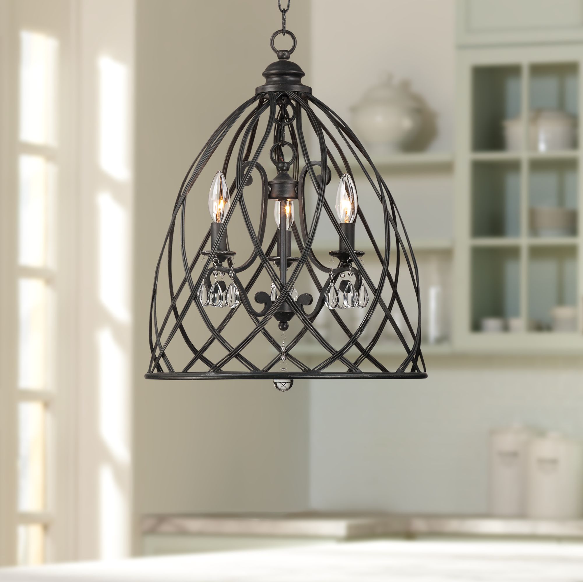 Franklin Iron Works Bell Cage 22" High Metal Mini Chandelier