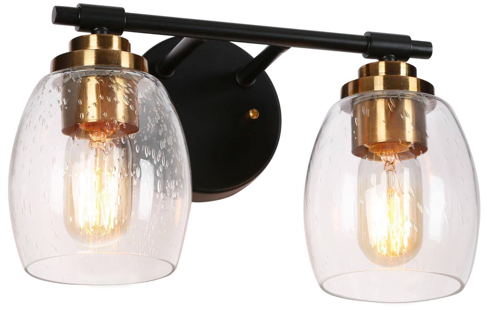 2-Lights 12.6"W Bell Black and Imitation Electroplated Copper Wall Lamp