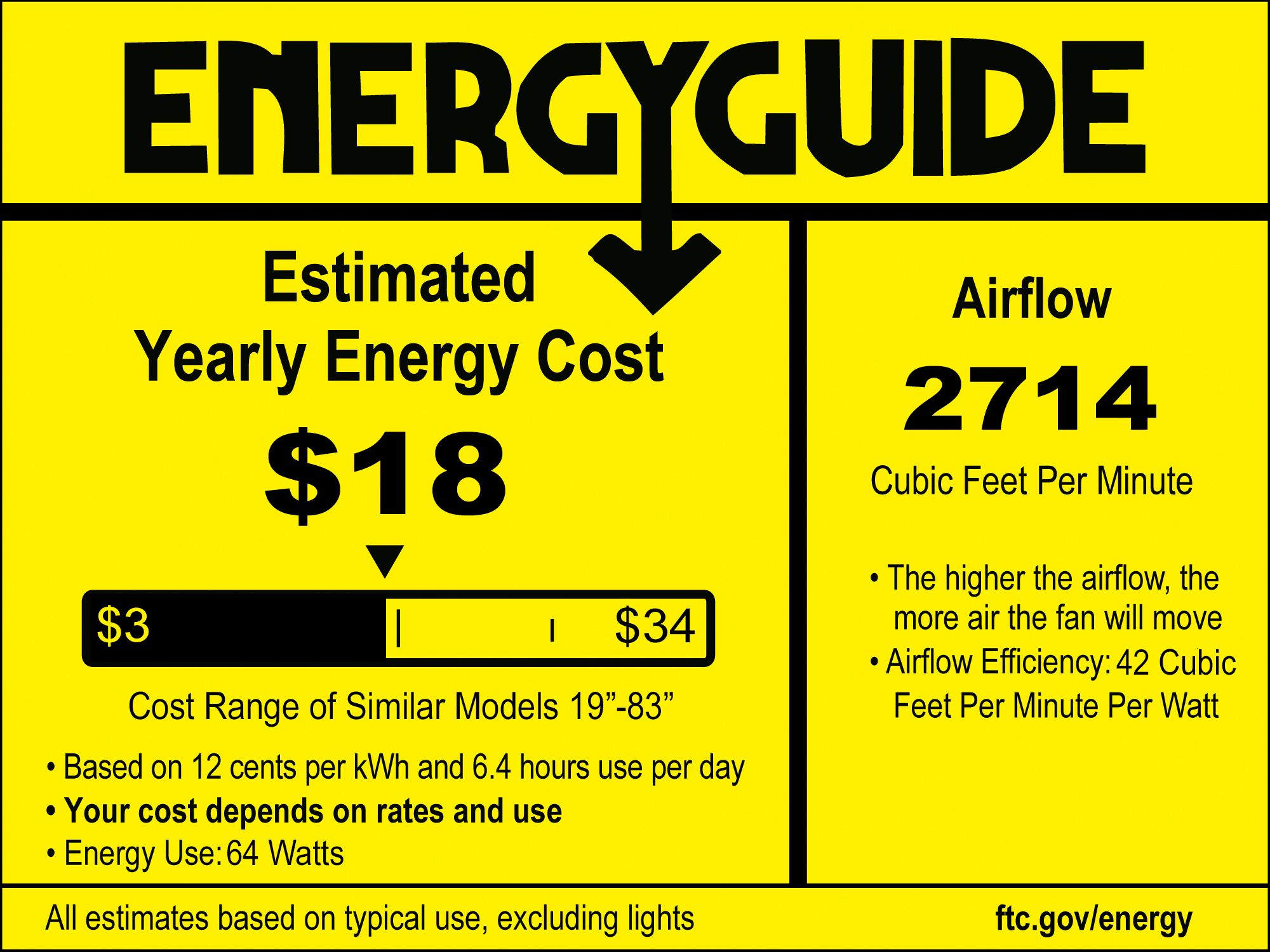 | Airflow | 2714 (Avg CFM) / 3067 (High CFM0 |