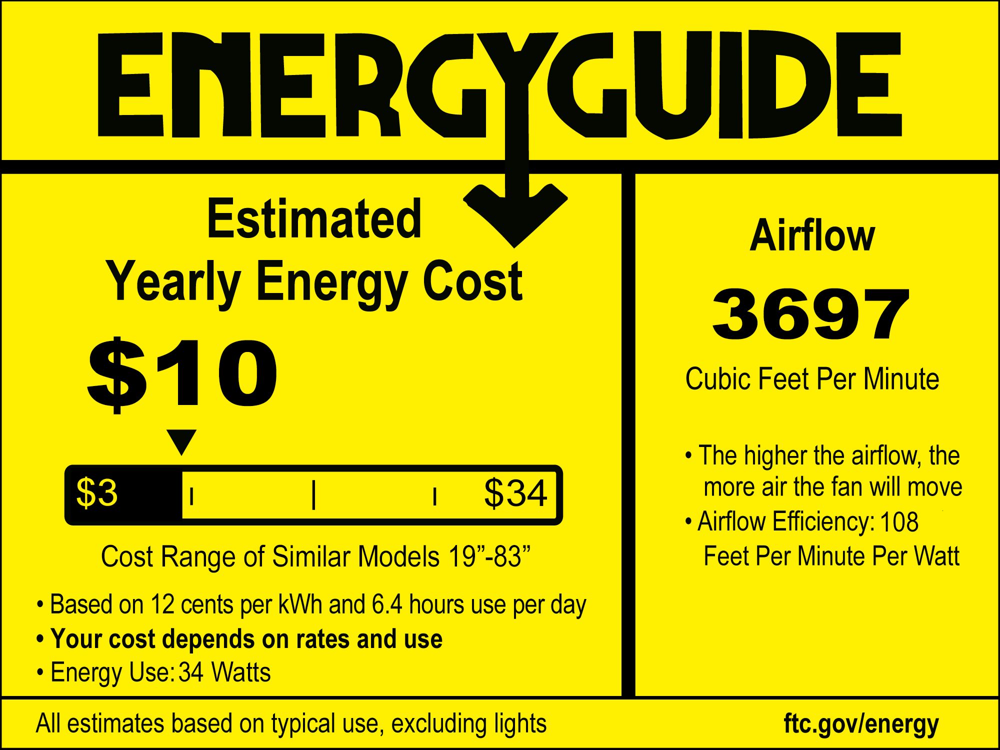 | Airflow | 3697 (Avg CFM) / 4836 (High CFM) |