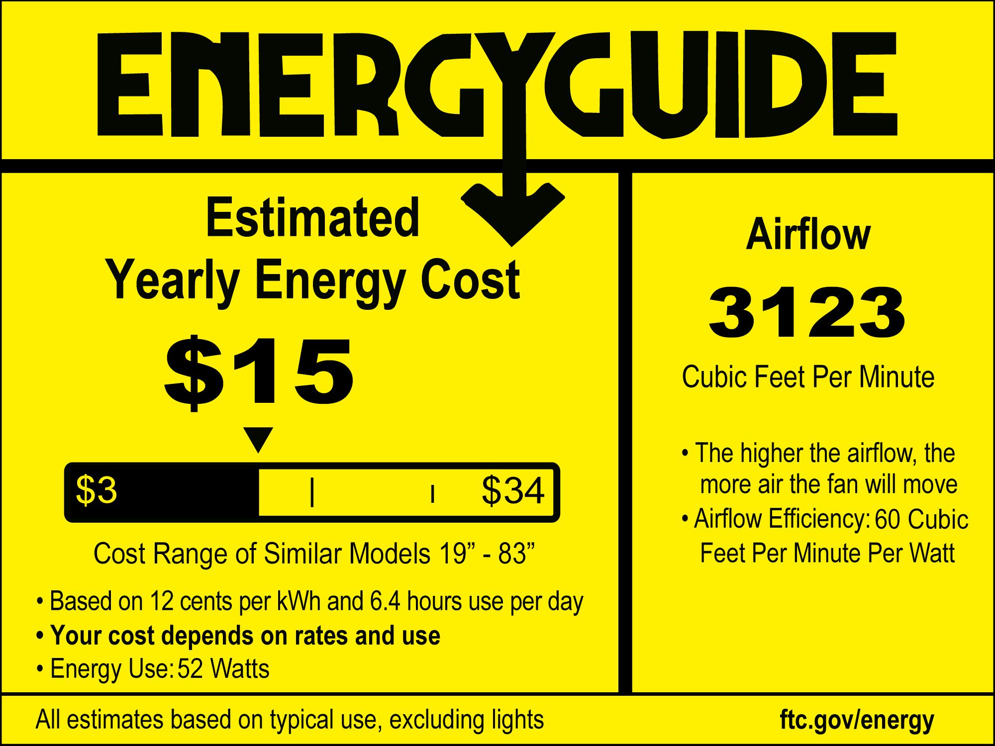 - Fan height 12" from ceiling to bottom of the blades (with 6" downrod).