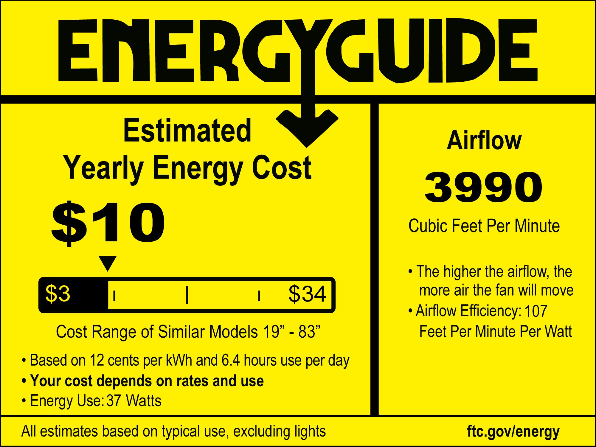 | Airflow | 3990 (Avg CFM) / 5363 (High CFM) |