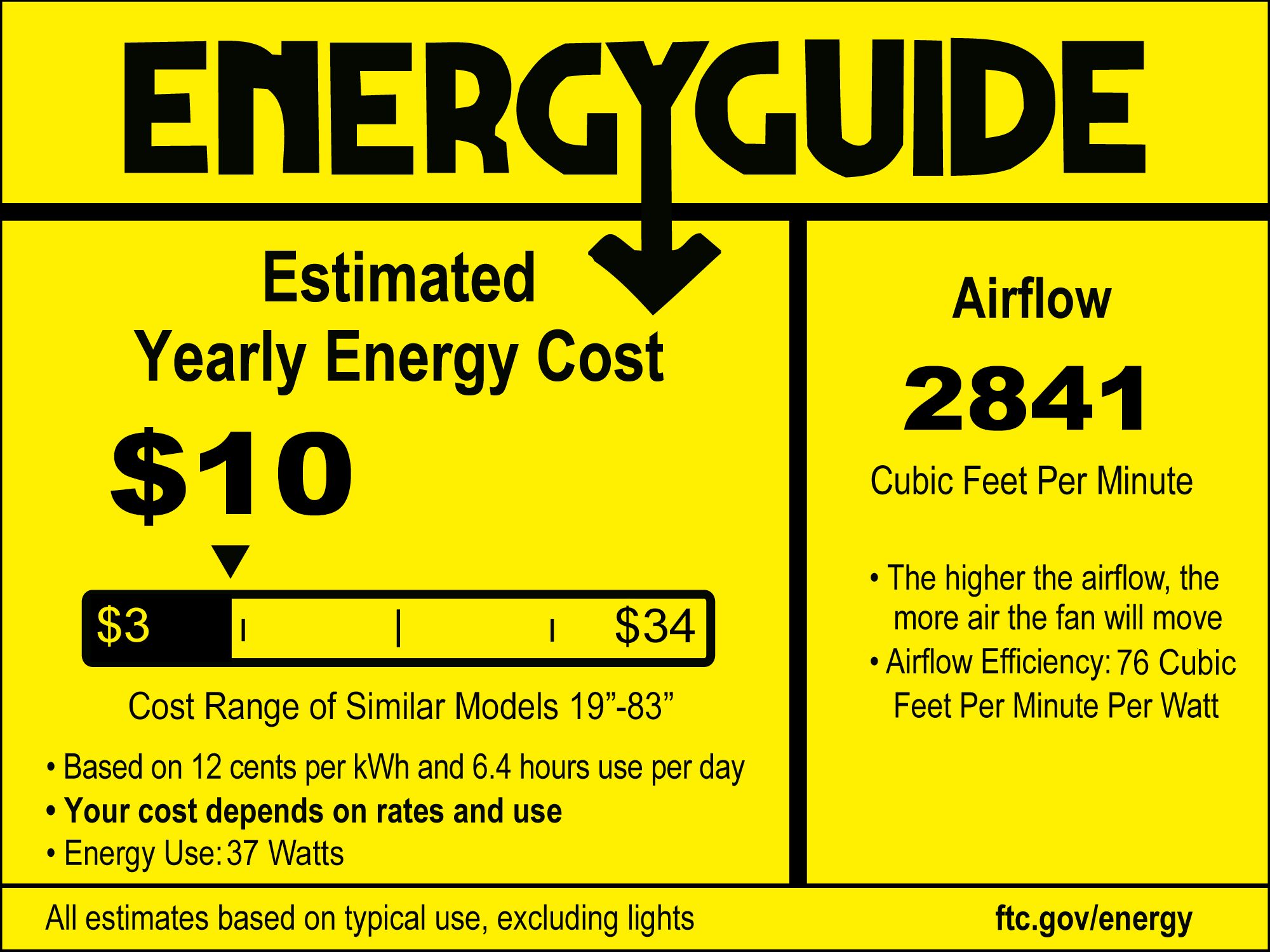 | Airflow | 2841 (Avg CFM) / 3775 (High CFM) |