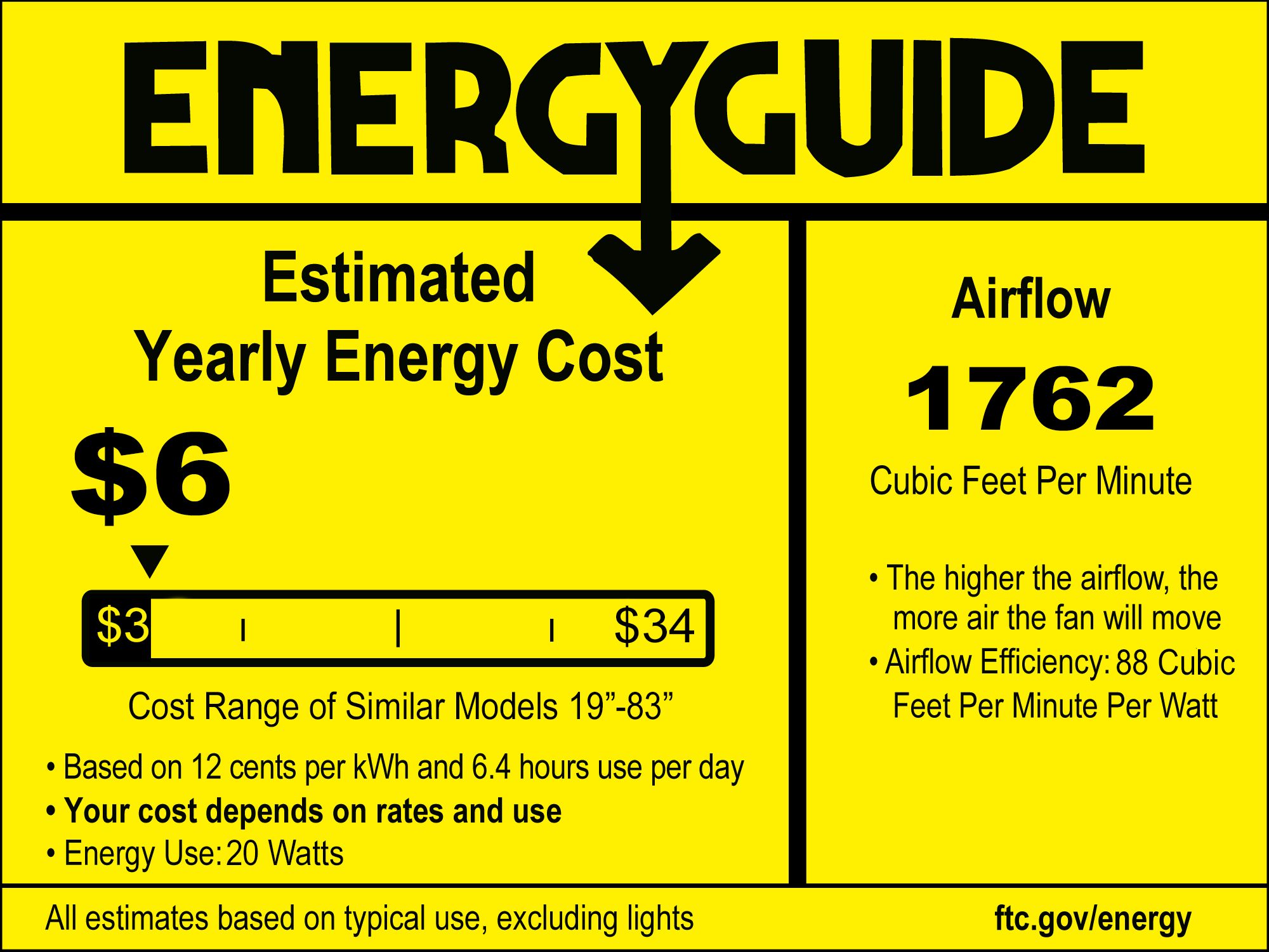 | Airflow | 1762 (Avg. CFM) / 2437 (High CFM) |