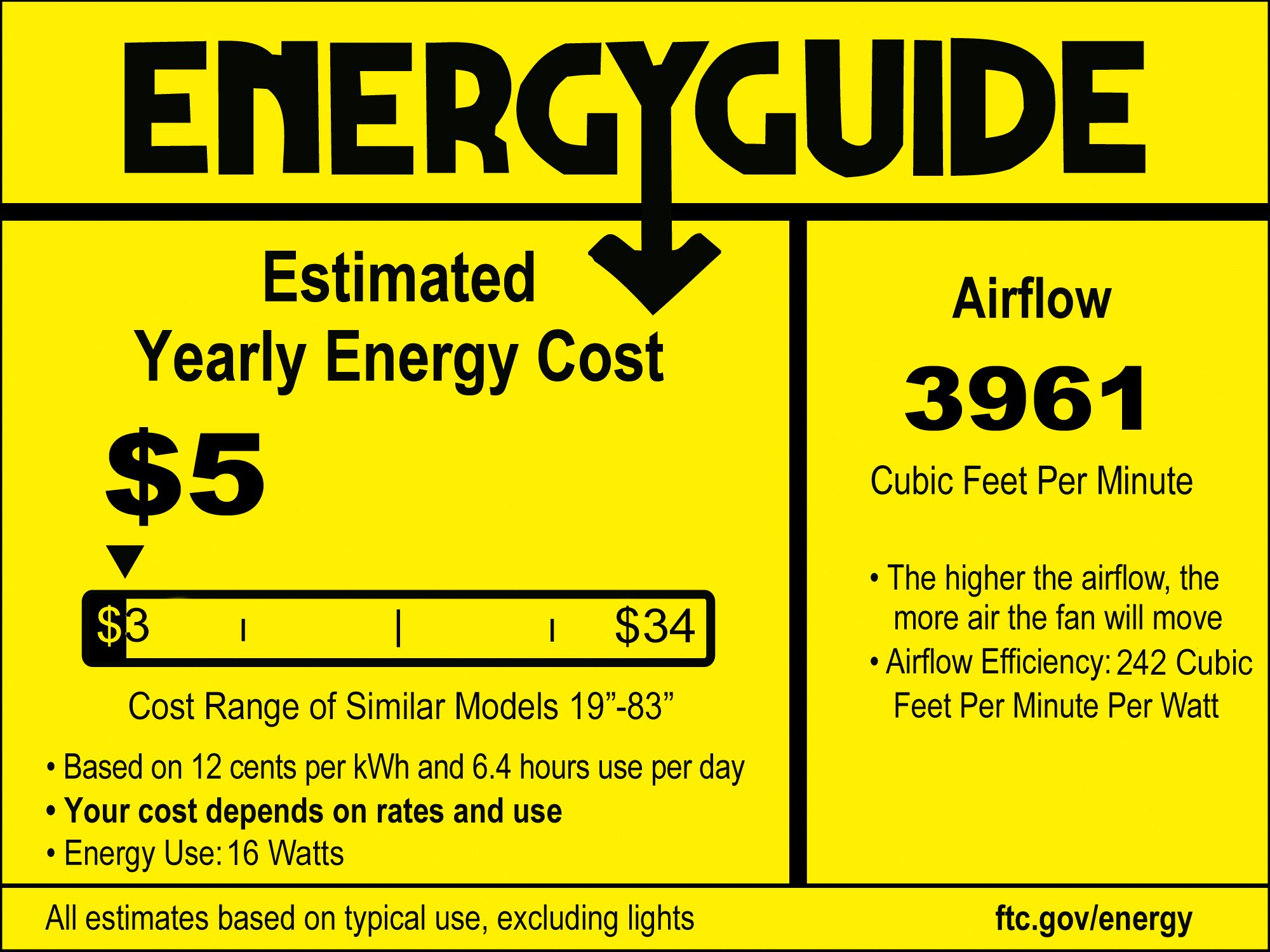| Airflow | 3961 (Avg CFM) / 5885 (High CFM) |