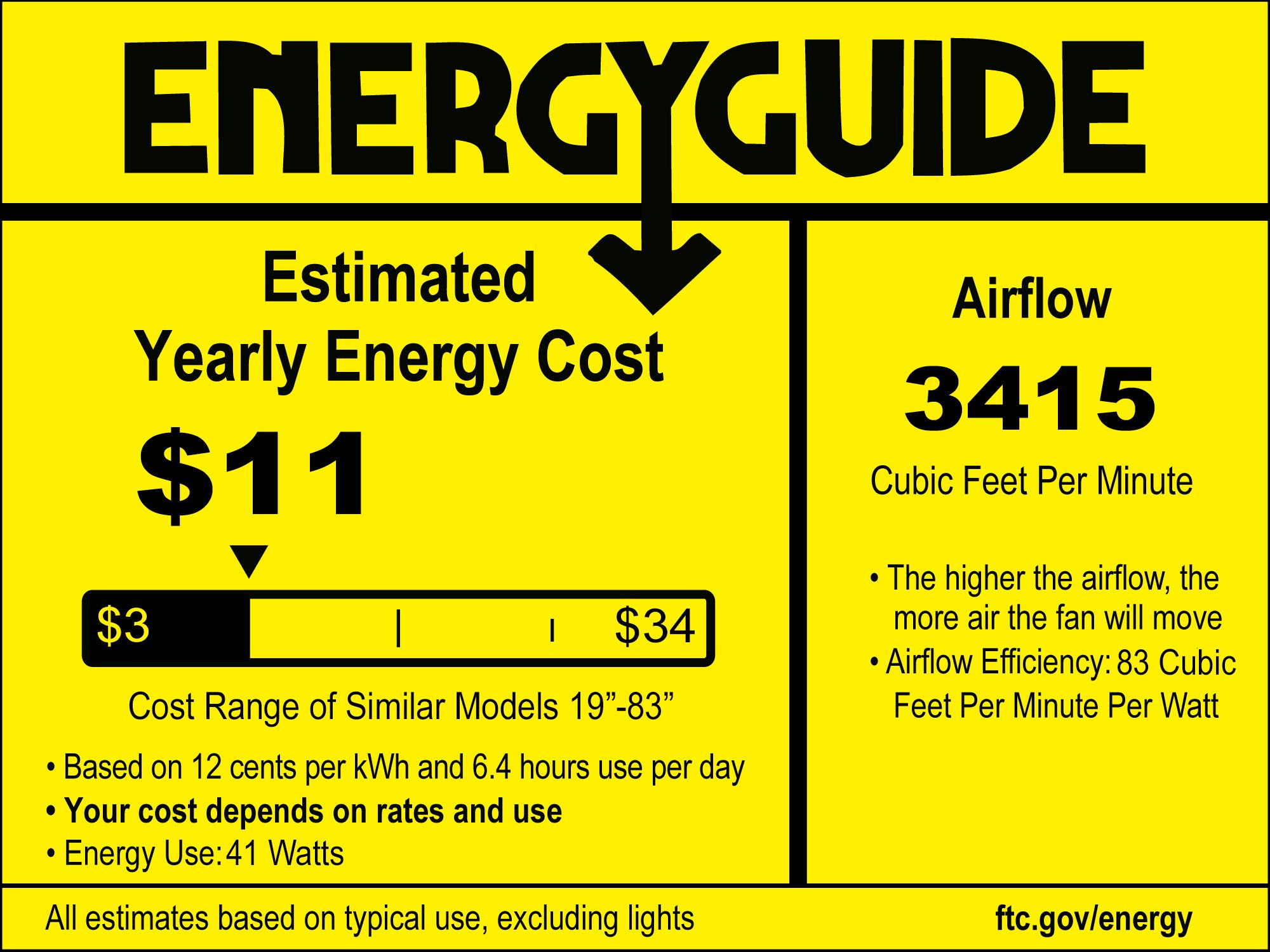 | Airflow | 3415 (Avg. CFM) / 4758 (High CFM) |