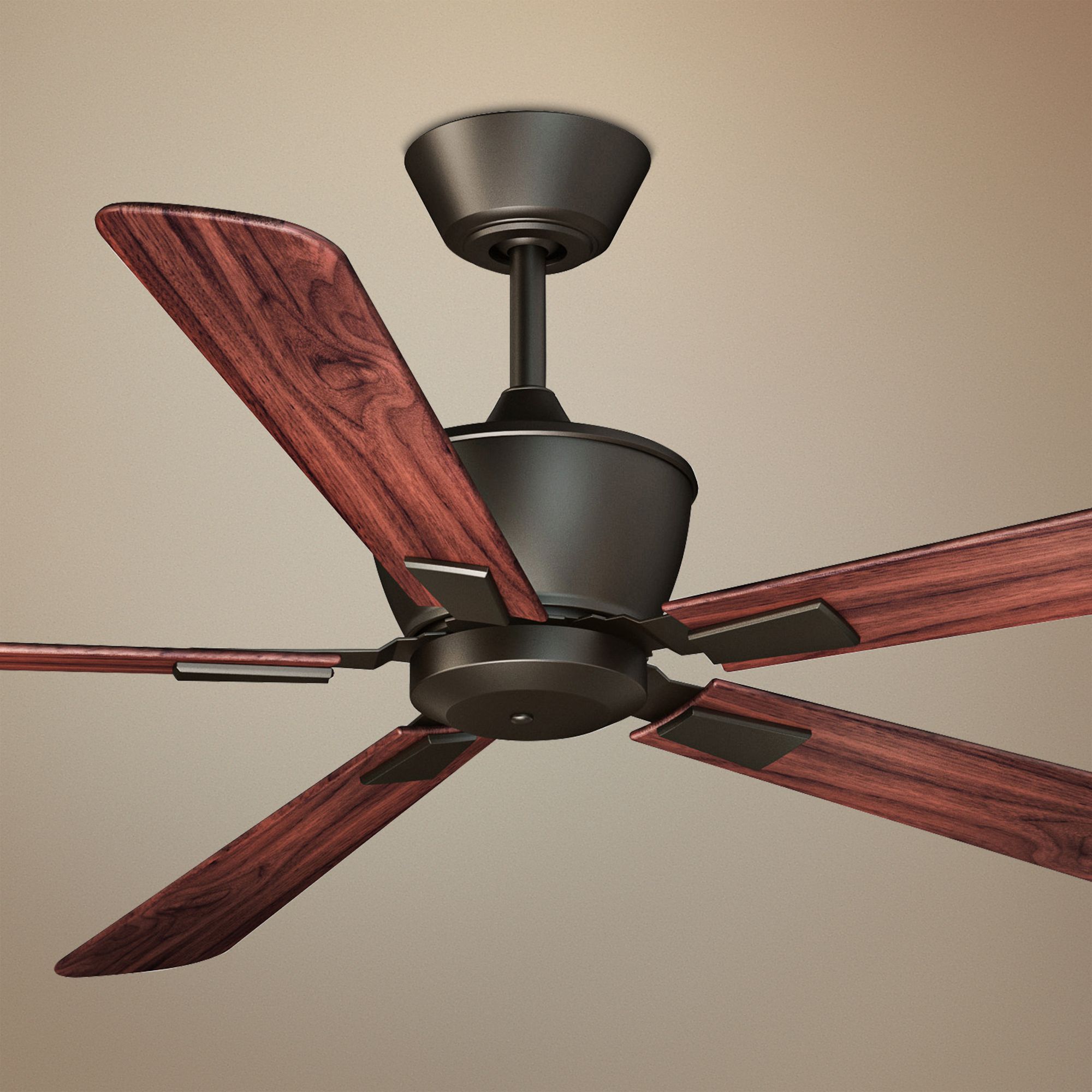 The Geneva ceiling fan has an stylish industrial feel. It features an oil-rubbed bronze finish motor and five walnut/teak finish blades. With its rich colors and simple design it's a tasteful addition to any space.