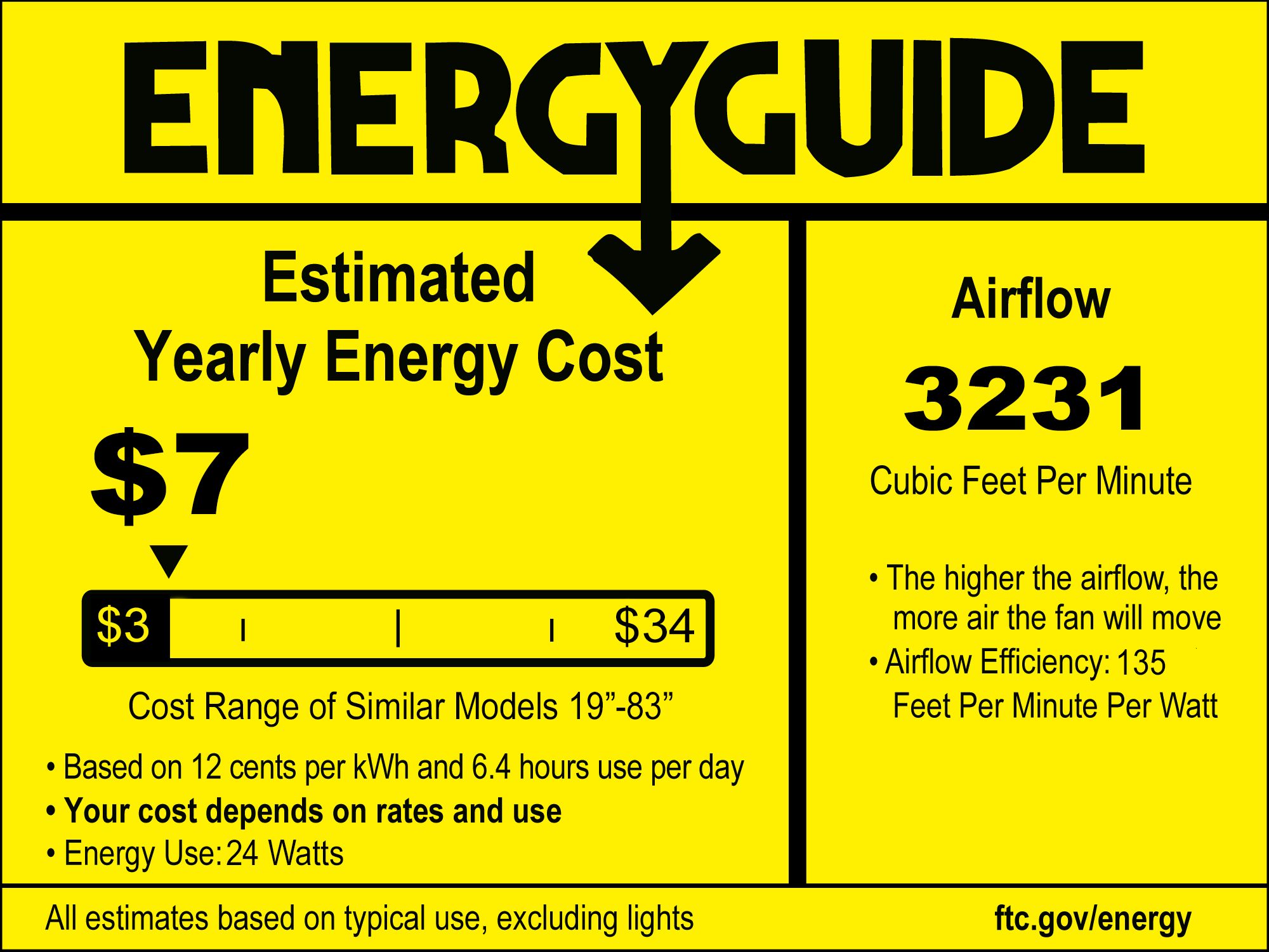 | Airflow | 3231 (Avg CFM) / 4801 (High CFM) |
