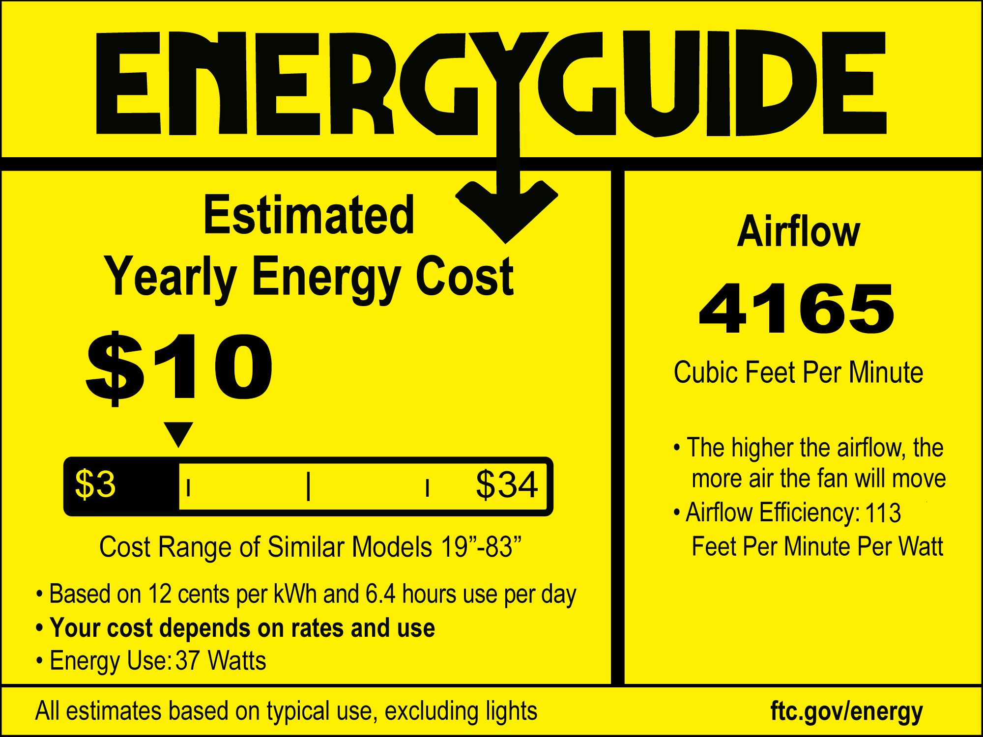 | Airflow | 4165 (Avg CFM) / 5797 (High CFM) |
