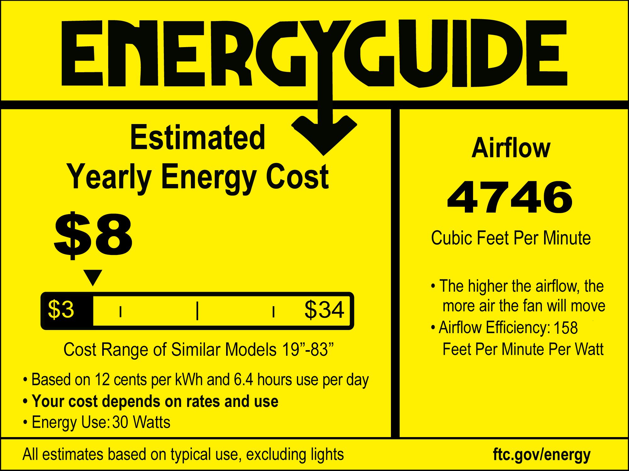 | Airflow | 4746 (Avg CFM) / 5824 (High CFM0 |
